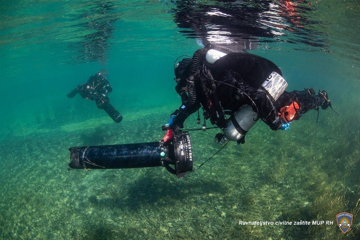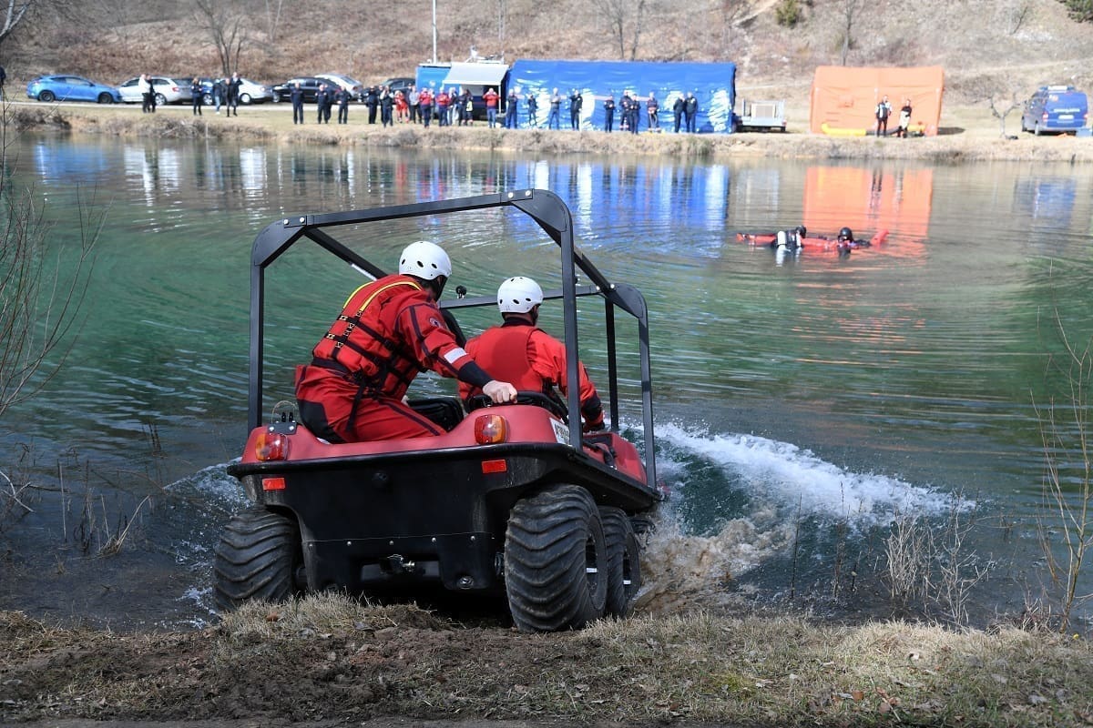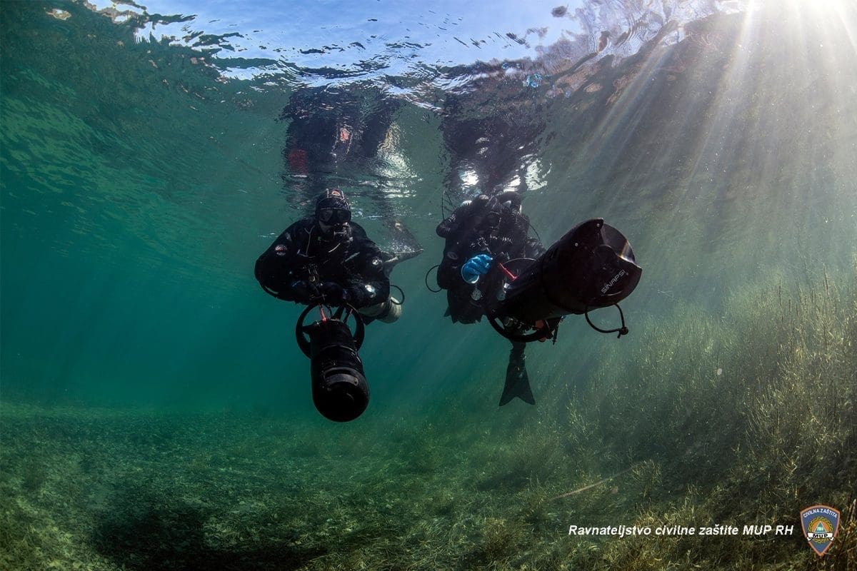 Na današnjem pokaznom dijelu vježbe, 15 pripadnika specijalističke ronilačke skupine DIP CZ i 4 pripadnika ronilačkog tima Uprave Republike Slovenije za zaščito i reševanje prikazali su potragu za utopljenicima pri čemu su koristili nove tehnologije: posebne sonare, podvodne robote i skutere te drugu specijalnu opremu za ronjenje u otežanim uvjetima, a za pretragu obale korišten je dron.