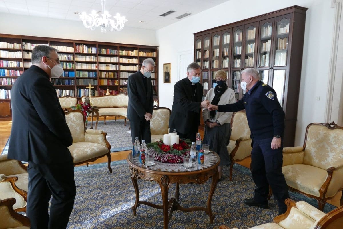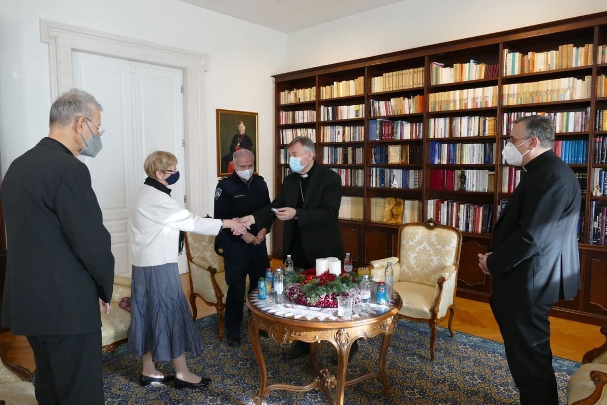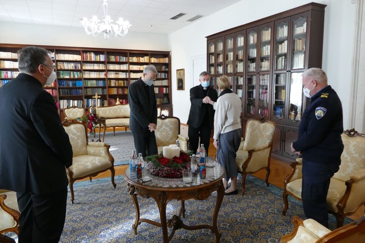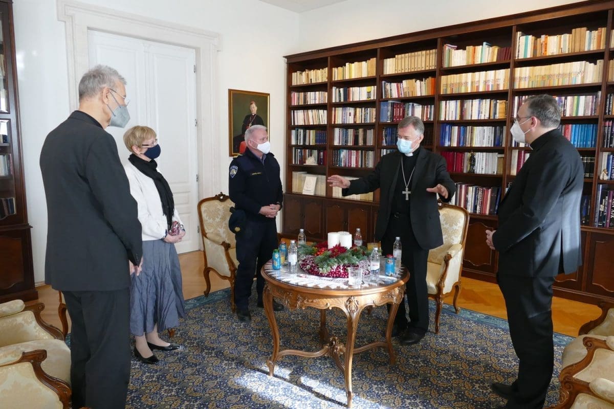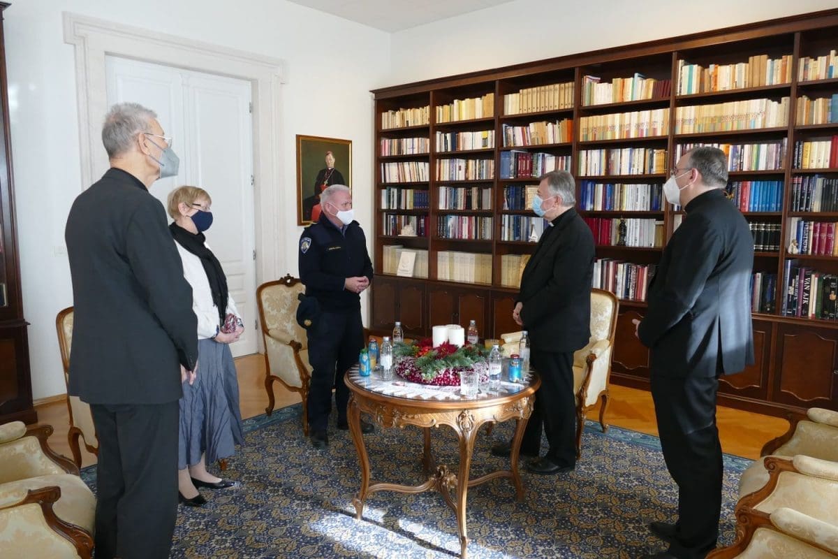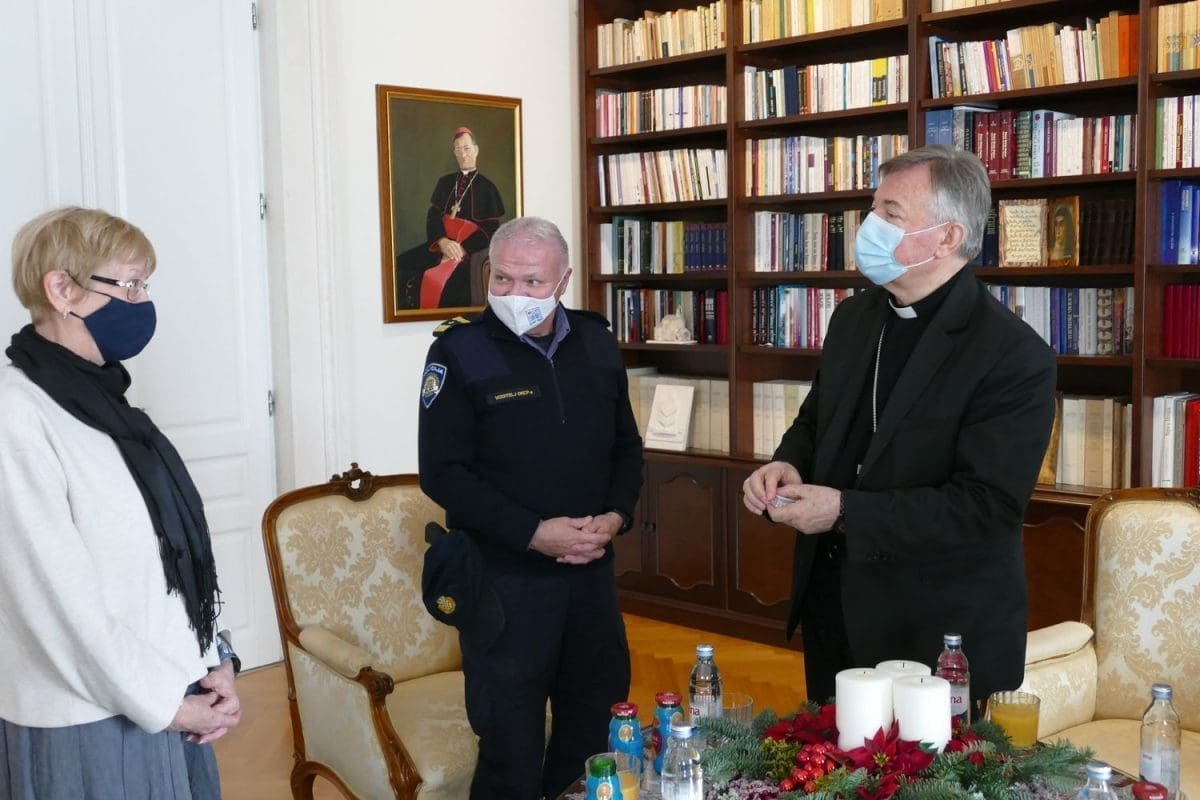 Predstavnici Policijske uprave zahvalili su nadbiskupu Barišiću na prijemu i svesrdnoj podršci. Nadbiskup je svakome darovao po krunicu zaželjevši im da ovoga Božića i pratećih mu blagdana imaju što manje intervencija na terenu i da ga proslave u mirnom i radosnom obiteljskom ozračju.