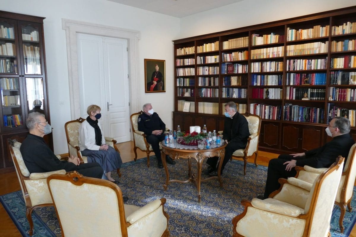 Splitsko-makarski nadbiskup i metorpolit mons. Marin Barišić primio je u utorak, 21. prosinca u Nadbiskupskom Ordinarijatu u Splitu predstavnike Policijske uprave splitsko-dalmatinske: Dianu Jakšić, načelnicu Sektora za imigraciju, državljanstvo i upravne poslove, Ninoslava Čurića, voditelja Operativno-komunikacijskog centra i don Marka Trogrlića, kapelana. Sastanku je nazočio i pastoralni vikar Splitsko-makarske nadbiskupije mons. Nediljko Ante Ančić.