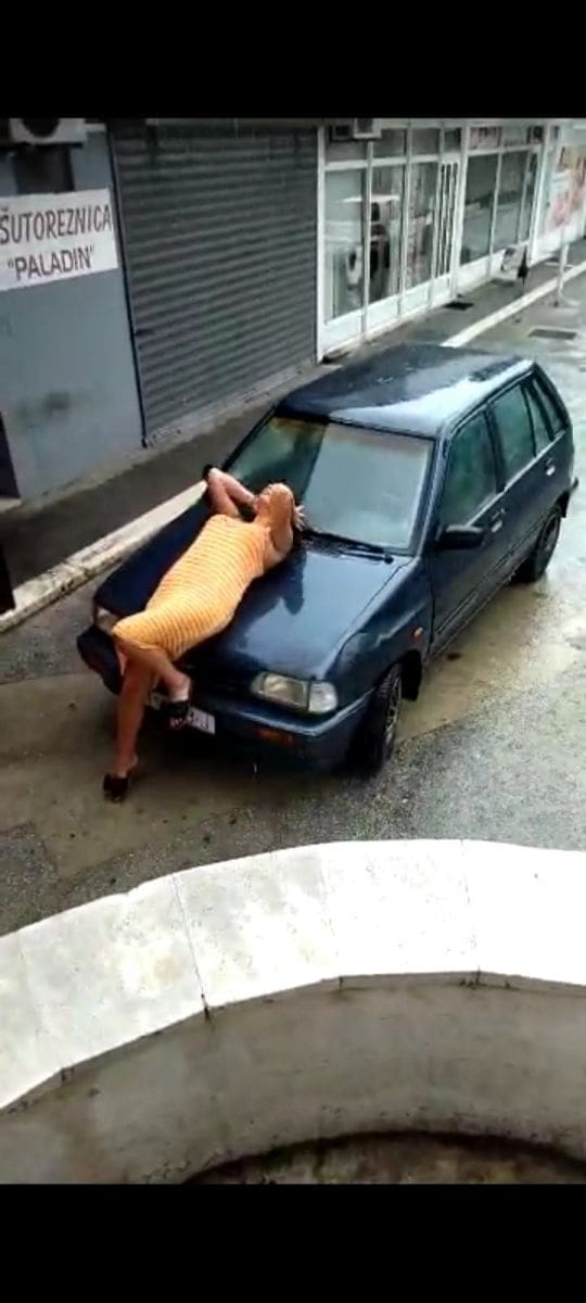 Jedan od muškaraca ju je snimao, a Ava je bez pogovora pozirala mokra na automobilu.