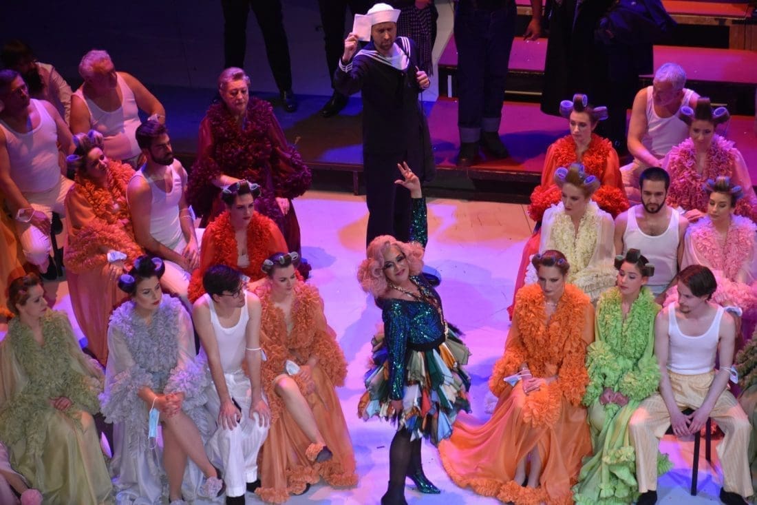 Najspektakularnija je izvedba sezone ona koja je zbog Covid-situacije triput odgađana – Verdijev „Krabuljni ples“. Iako su je svojedobno natkrivale političke kontroverze i cenzure, moderna verzija u režiji Gorana Golovka ponudila je neka sjajna, neočekivana rješenja. Ljubavni trokut koji to zapravo nije (jer Amelia, udana za grofova savjetnika Renata, nikada nije ostvarila vezu s Riccardom – iako su bili vidno zaljubljeni) daleko je od patetične sladunjavosti nad nedostižnom djevom. Njihova je platonska dinamika zapravo igra mačke i miša, s jasnim naznakama da neko veliko oko i uho stalno vreba tko, što, kad i s kim, na pozornici vidimo bondovske stražare koji tobože paze da netko ne izvrši atentat nad grofom, a vjerni je paž zaokupljen snimanjem selfieja. Misteriozna Ulrica koja se u velikim svjetskim opernim kućama već desetljećima prikazuje kao crna šamanka u splitskoj je izvedbi senzacionalne Terezije Kusanović postala drag queen, voditeljica noćnog astro-showa koja, da groteska bude sjajnija, ljubavnim pečalom napaćenu Ameliju (u suverenoj izvedbi Daniele Schillaci) šalje po čarobnu biljku – na domaću plantažu marihuane.