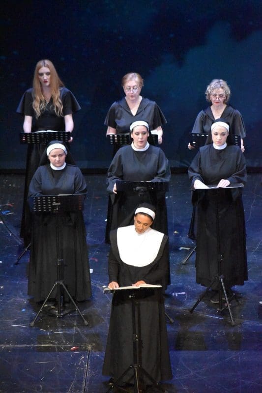 Orkestar splitskog HNK-a okuplja sjajne glazbenike čija je pozicija možda i „najčišća“ od svih – orkestralnu rupu vidite iz viših loža, a rijetko tko gleda u gudala kada je na pozornici baletni ili operni ansambl. A upravo je taj skriveni, nesebični trenutak magije ono što izvedbu s dobar ili vrlo dobar podiže na odličan. Orkestar i Zbor posebno su se napatili u fazama priprema, a silne odgode i otkazivanja kad bi se tu i tamo, po zakonu velikih brojeva, pojavio koji zaraženi član ipak ih nisu demoralizirale. Raditi posao čija je pretpostavka pravilno disanje i postura, znajući da se dobar dio vremena to radilo pod maskama, potpuno narušavajući čitav glazbeni aparat, vraški je teška rabota. Zatim uzmimo u obzir kako je Orkestar zvučao, primjerice, svirajući Čajkovskog, a Zbor na nastupu povodom Dana grada. Orkestar je poznat po silini zvuka i konciznom manevriranju i u najzahtjevnijim izazovima (naprimjer Verdijev 3. čin „Un ballo in maschera“ ili dvoboj Onjegina i Lenskog kod Čajkovskog), a zbor iz izvedbe u izvedbu sve više oduševljava skokovitim napretkom. Osim što je pjevačka boja, a skoro bi bolje i konkretnije bilo reći „patina“ naposljetku ispolirana i rafinirana, muški i ženski dio Zbora konačno i odvojeno funkcioniraju onako kako je to Sofoklo bio zamislio – kao dva jednako moćna semikora, što je muški dio pokazao u prvome činu „Krabuljnoga plesa“, a ženski osobito u „Sestri Angelici“. Posebna pohvala ide mladim snagama, u nadi da će se za njihove solaže nalaziti što više mjesta.