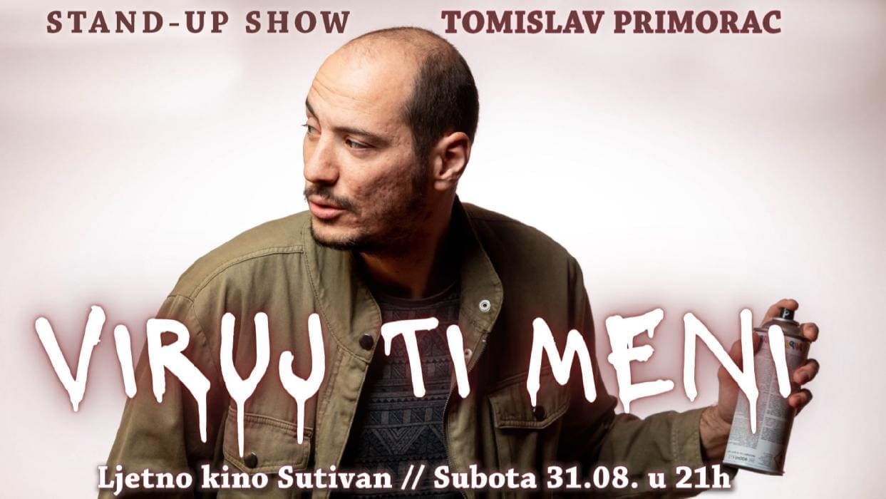 "Tomislav Primorac je mitološko biće kojega se svi purgeri boje – poludalmatinac, poluhercegovac. Diplomirani je fizičar, ali se na razočarenje svojih roditelja bavi stand up komedijom. Životni san mu je da zbog svojih doprinosa čovječanstvu u povijesti ostane zapamćen poput Nikole Tesle, ne toliko iz filantropskih pobuda, nego čisto zato da bi se Dalmatinci i Hercegovci svađali čiji je. Poprilično je skeptičan. Najmanje vjeruje ljudima koji ga pokušavaju uvjerit s argumentom "viruj ti meni". Vidimo se u subotu 31. kolovoza u 21h u Ljetnom kinu Sutivan", najavili su iz Turističke zajednice Sutivan.