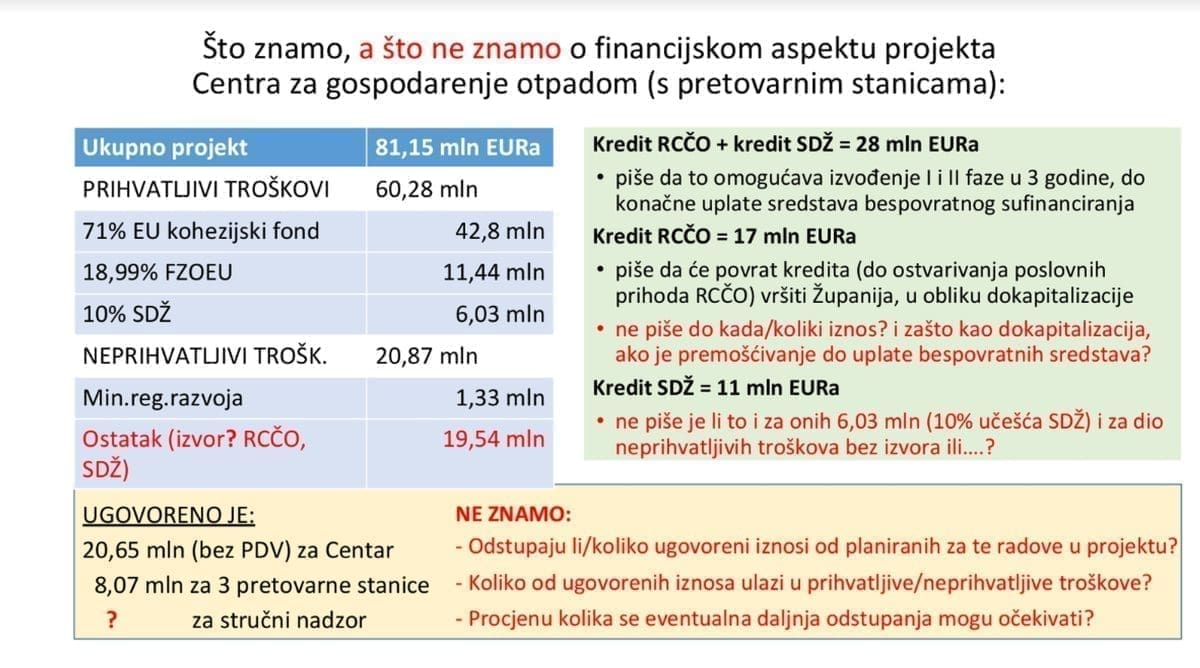 16:32 - Daša Dragnić iz Koalicije "ZA" ispred vijećnika je na slideu otkrila probleme koji su vezani za RČCO za gospodarenje otpadom Lećevica. Evo što je sve navela vijećnicima u javnosti u pojednostavljenom prikazu.