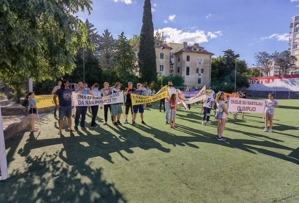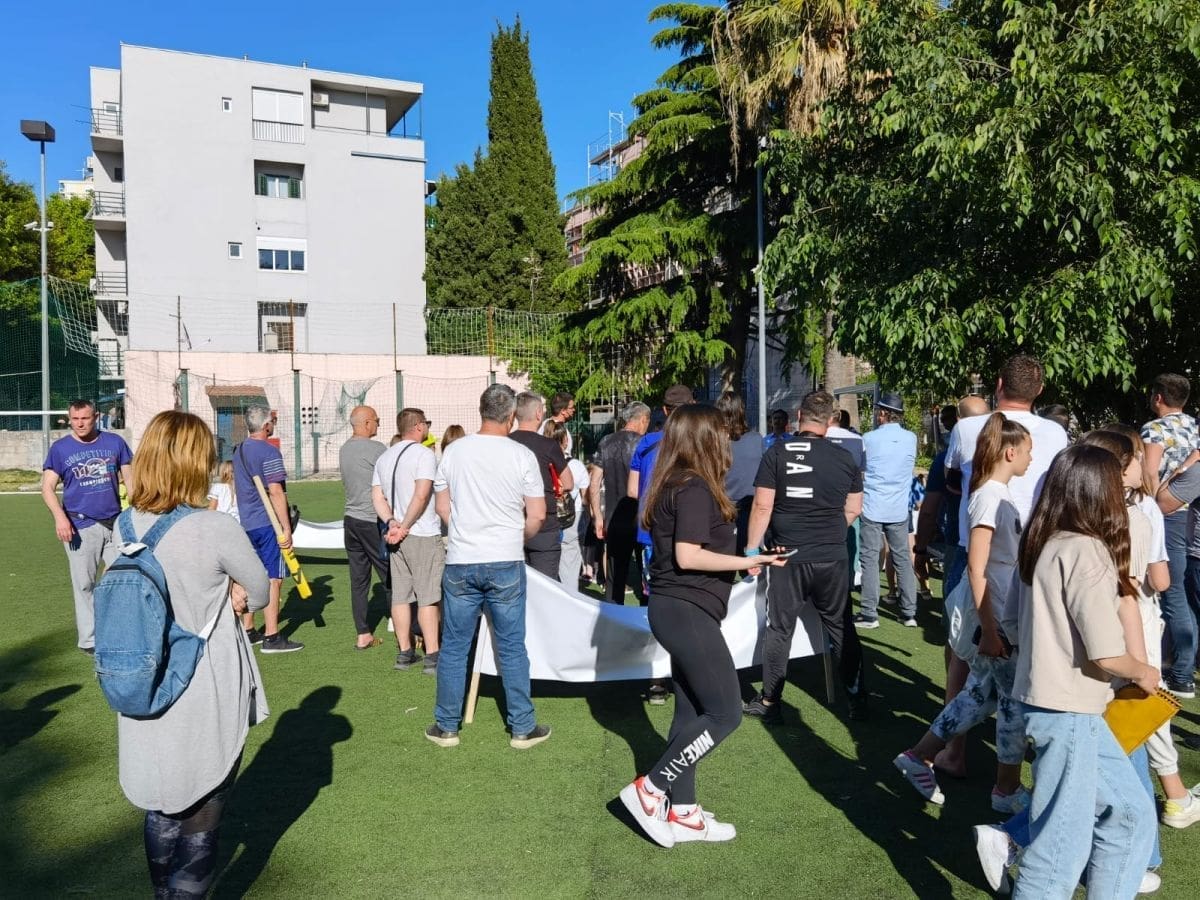 "Prošlo je točno 15 godina otkako djeca našeg kvarta nemaju pravo na svoje, školsko igralište, od 2006. do 2021. godine", kazuju organizatori prosvjeda.