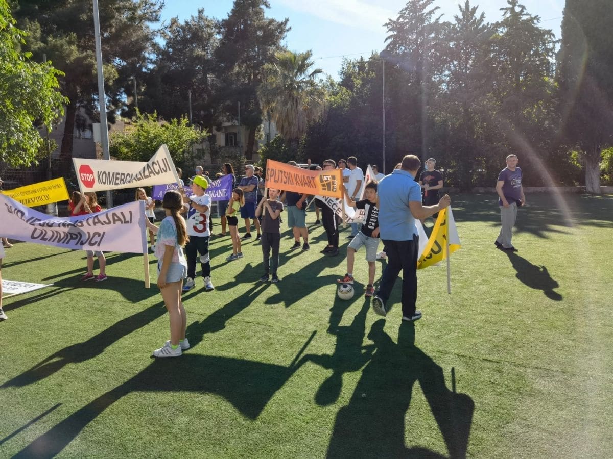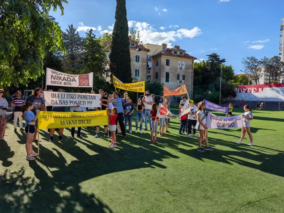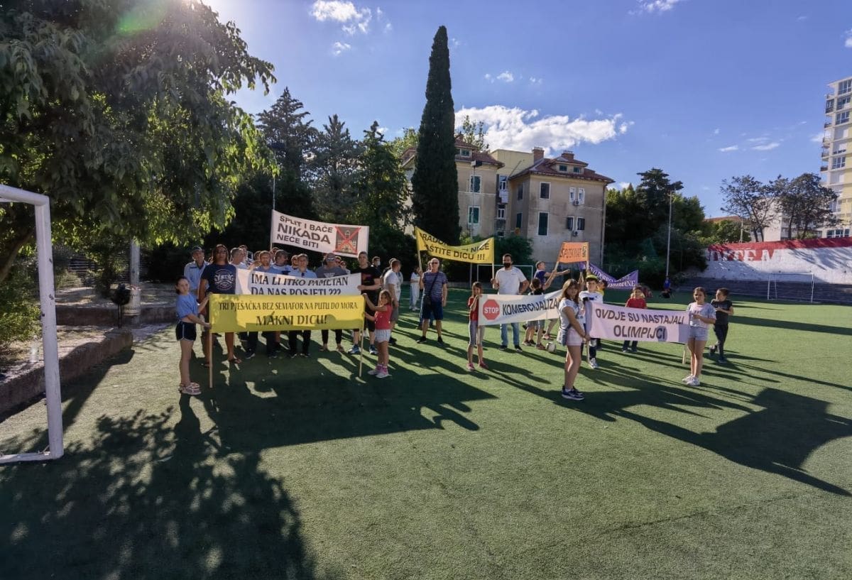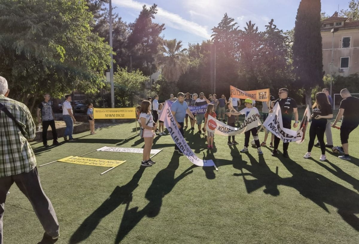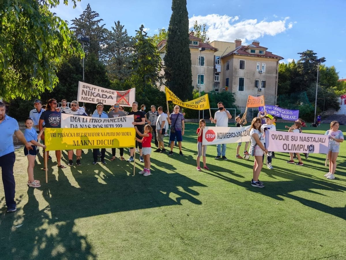 Vijeće gradskog kotara Bačvice i roditelji i djeca OŠ "Pojišan" danas su ispred zgrade škole, pored školskog igrališta organizirali mirni građanski prosvjed.