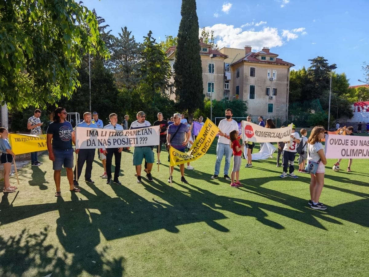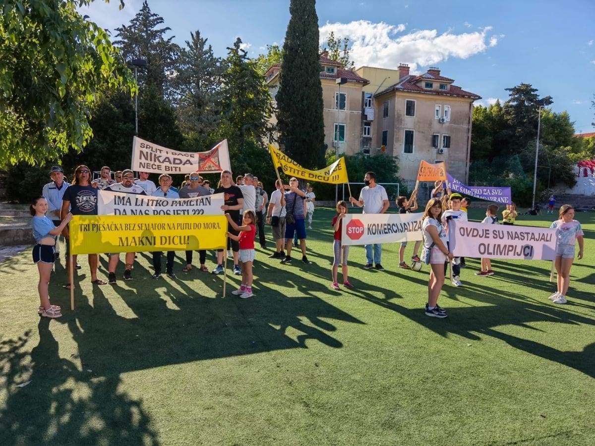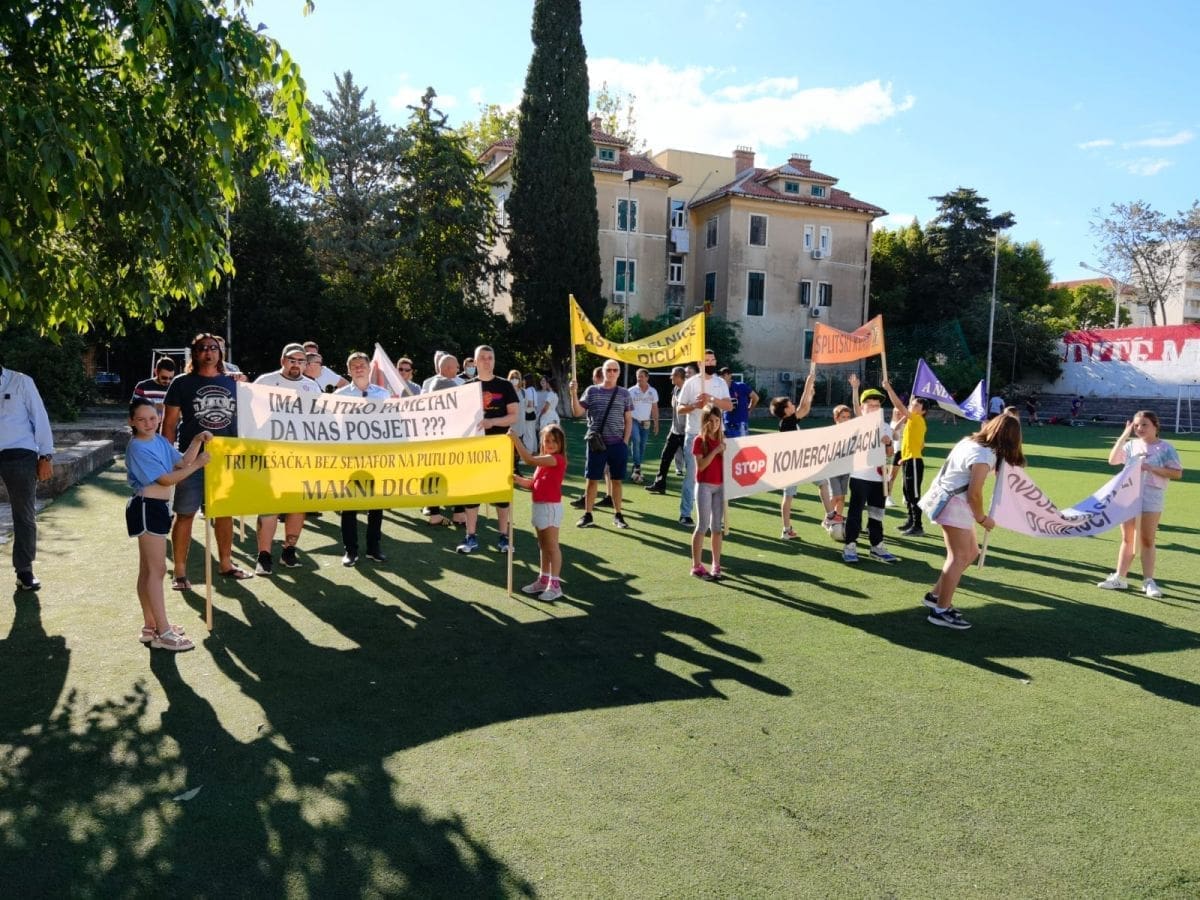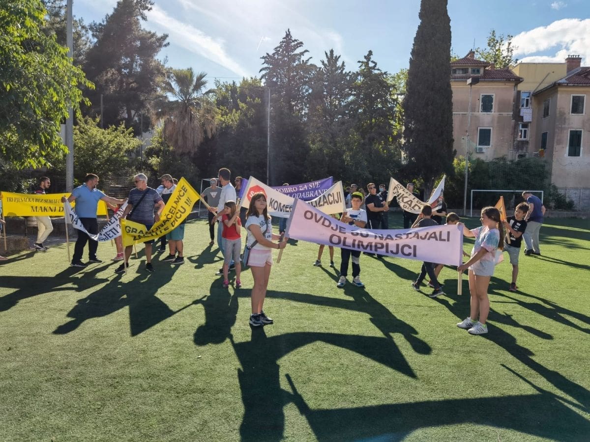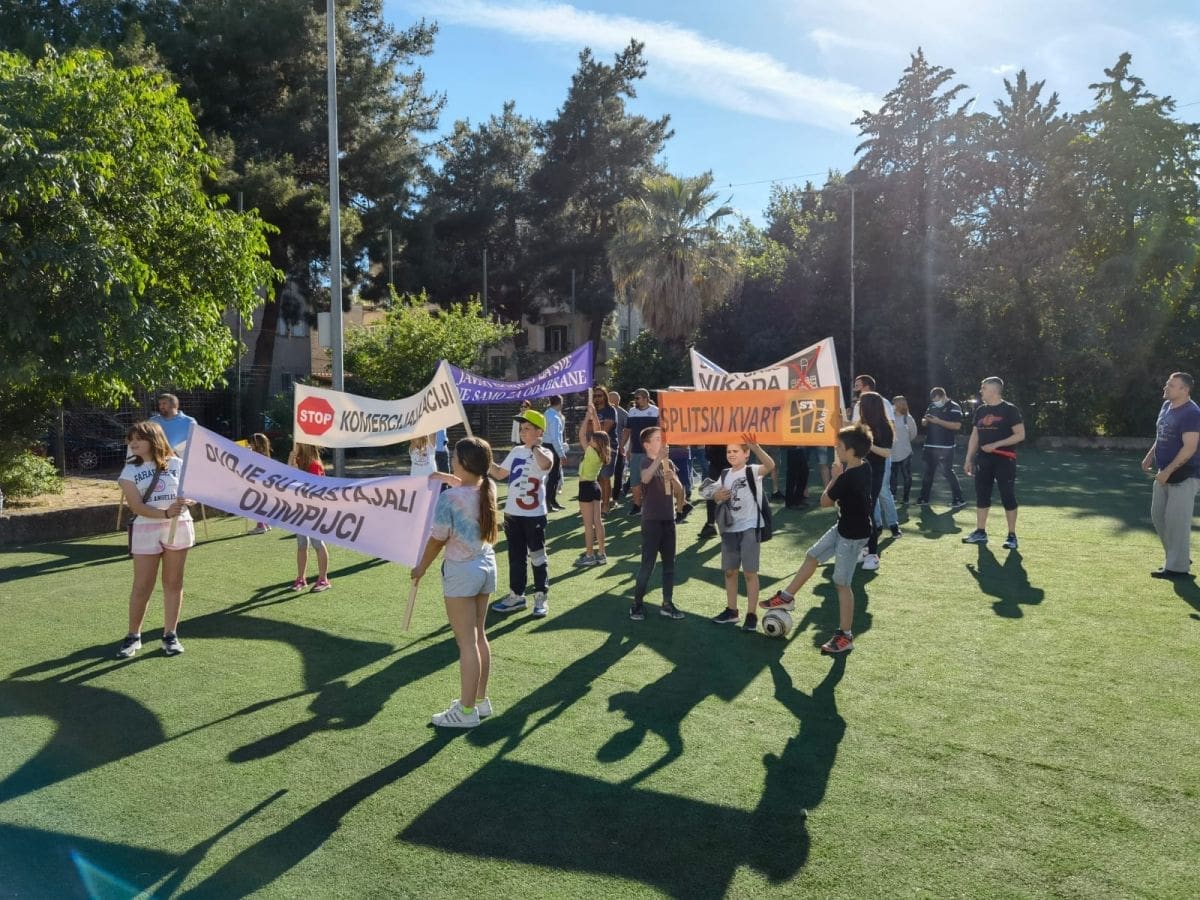 Vijeće gradskog kotara Bačvice i roditelji i djeca OŠ "Pojišan" danas su ispred zgrade škole, pored školskog igrališta organizirali mirni građanski prosvjed.