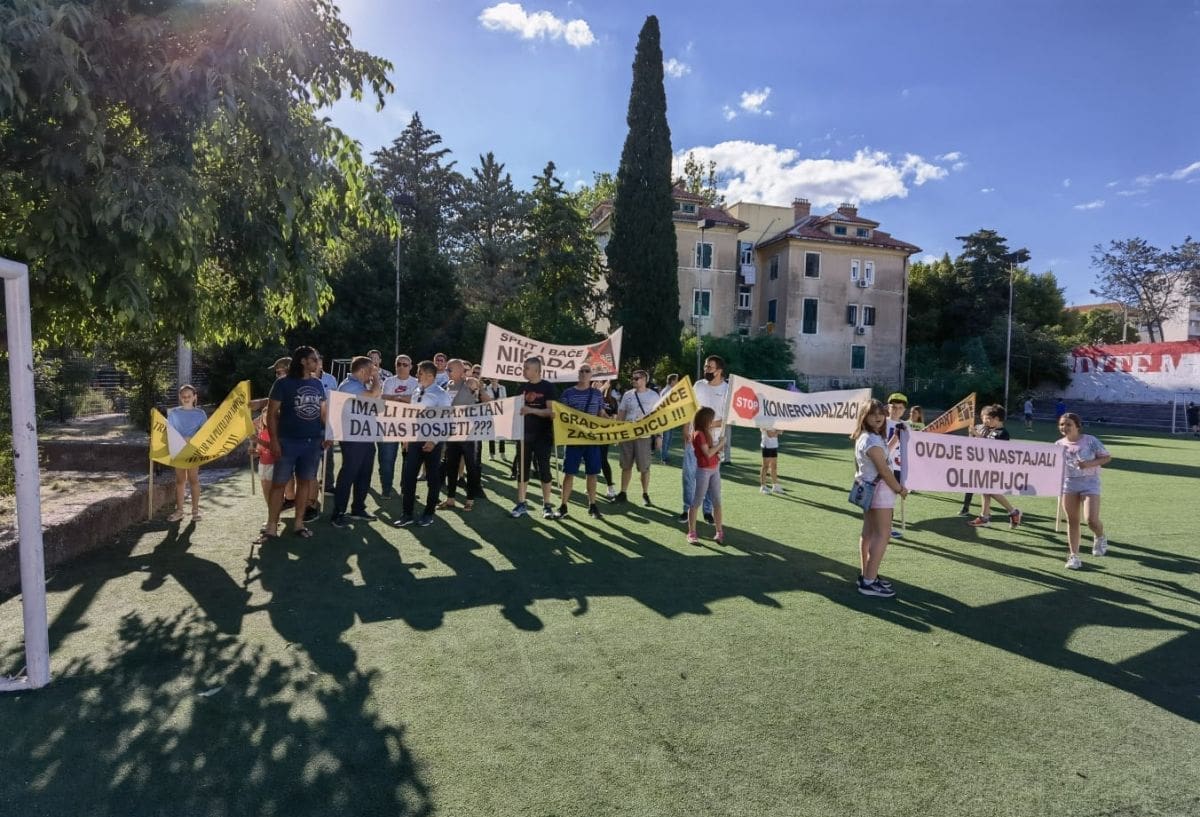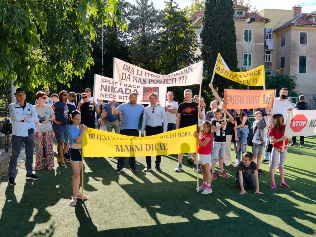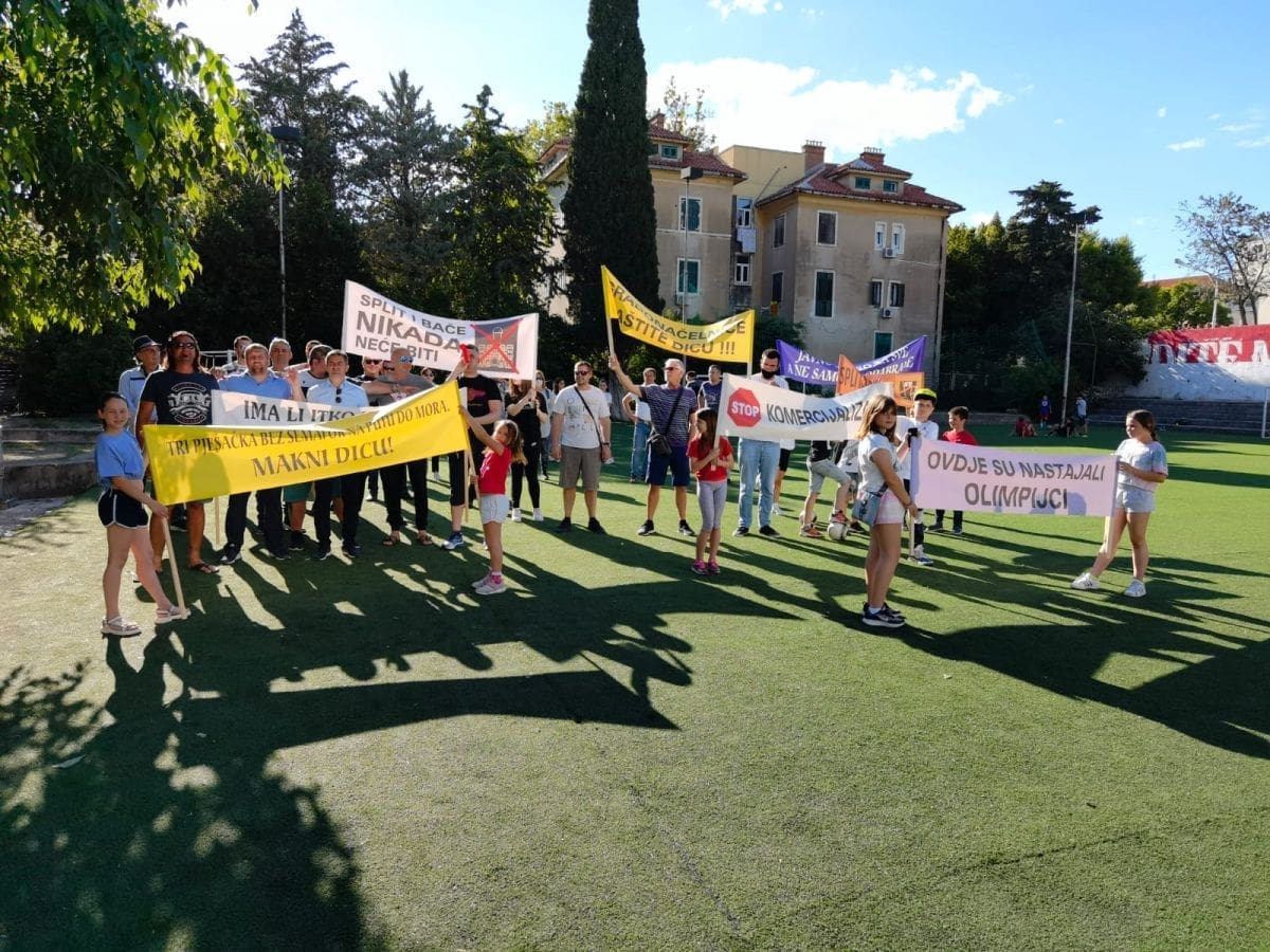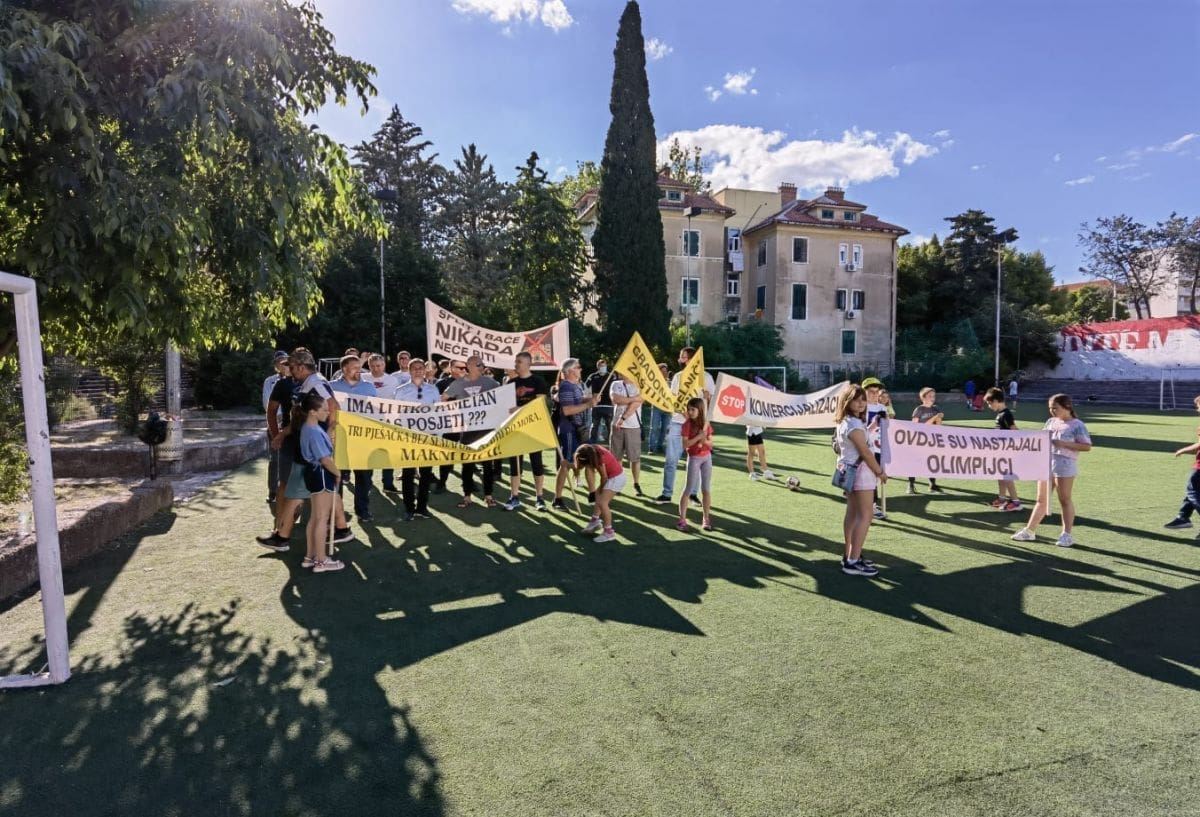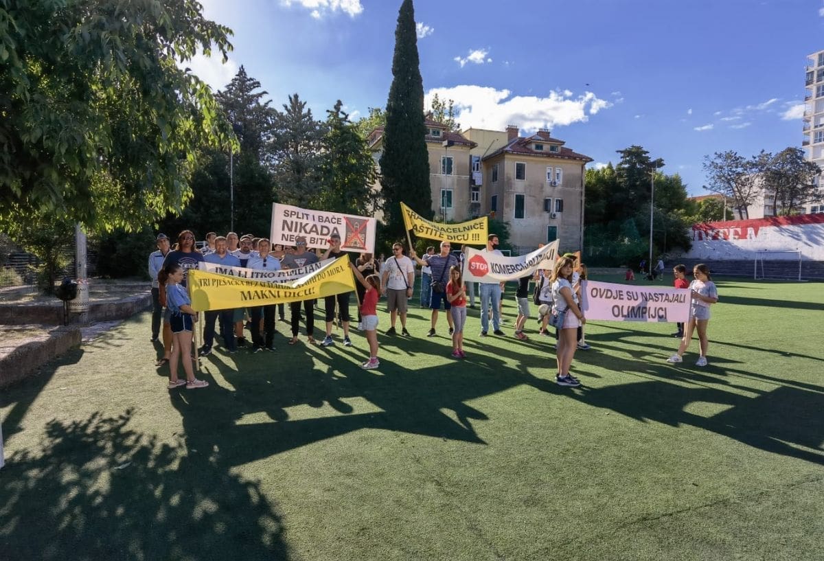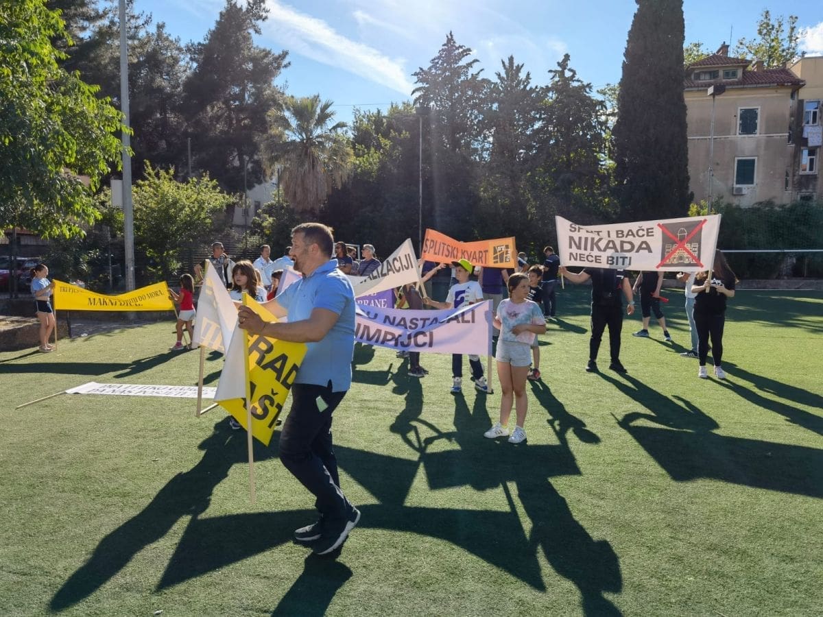 Vijeće gradskog kotara Bačvice i roditelji i djeca OŠ "Pojišan" danas su ispred zgrade škole, pored školskog igrališta organizirali mirni građanski prosvjed.
