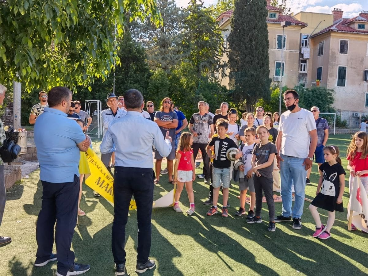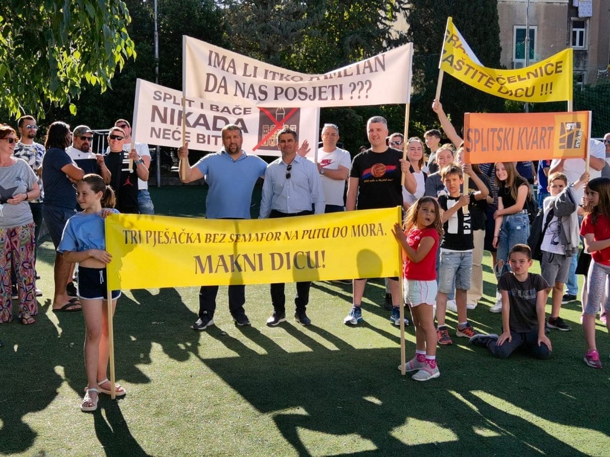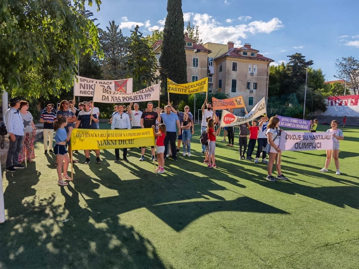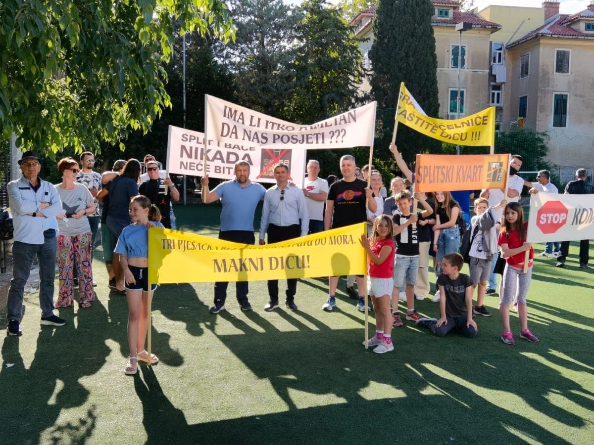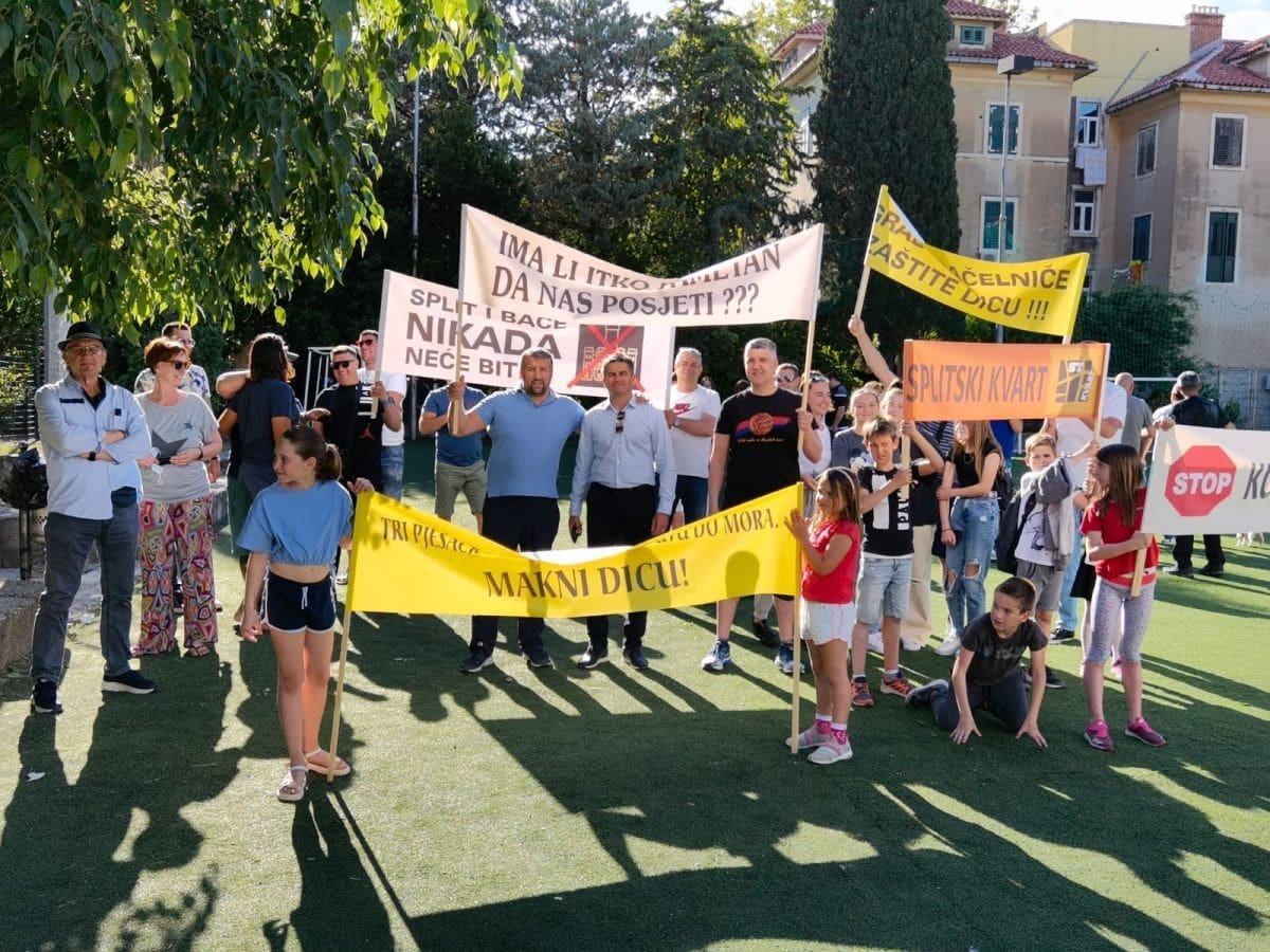 Vijeće gradskog kotara Bačvice i roditelji i djeca OŠ "Pojišan" danas su ispred zgrade škole, pored školskog igrališta organizirali mirni građanski prosvjed.