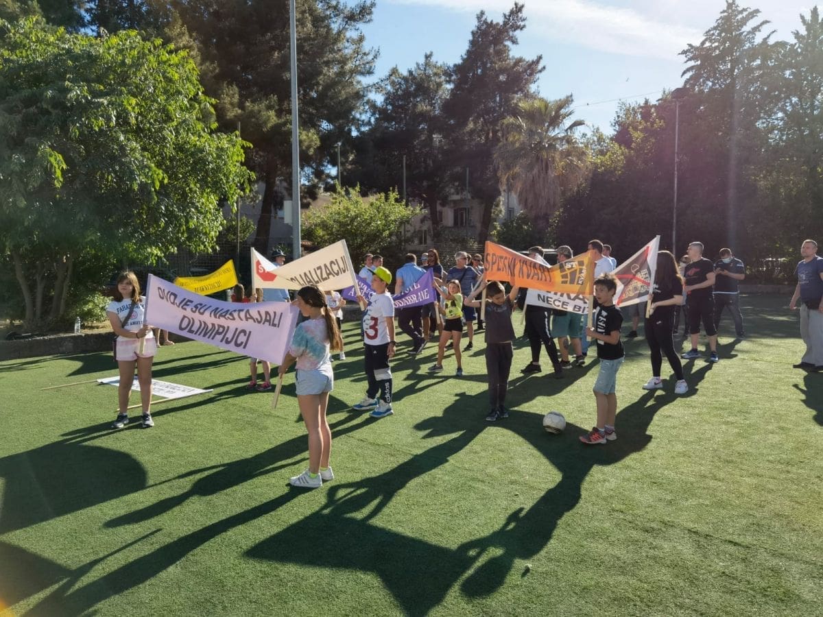 "Dugih 15 godina, i konačno je došao trenutak da tome kažemo, jasno i glasno, DOSTA JE!!! Ne možemo i nikada nećemo prihvatiti činjenicu da se u današnjem društvu, kakvo god ono bilo, školsko igralište ponovo da u sramnu KONCESIJU PRIVATNIKU!