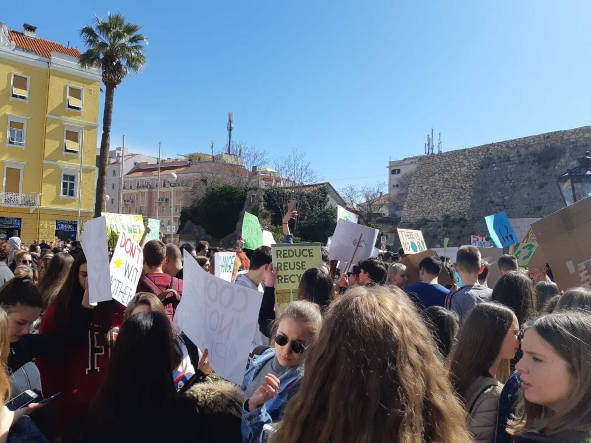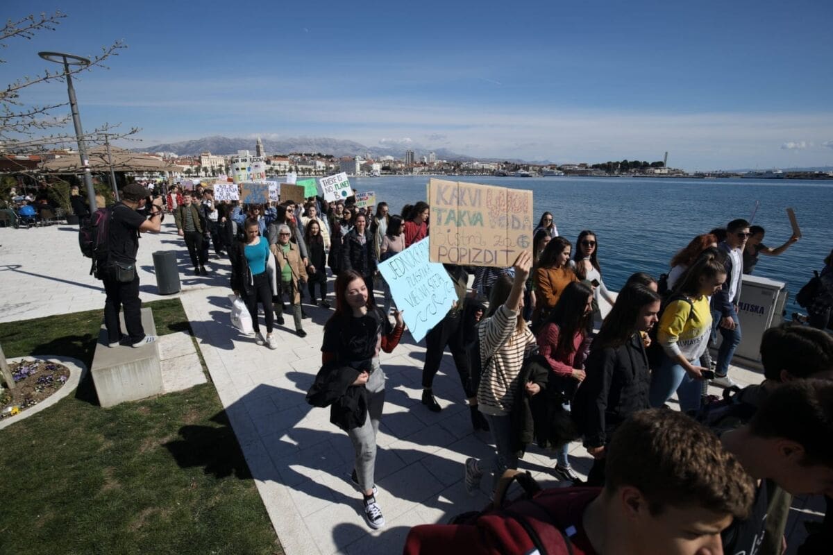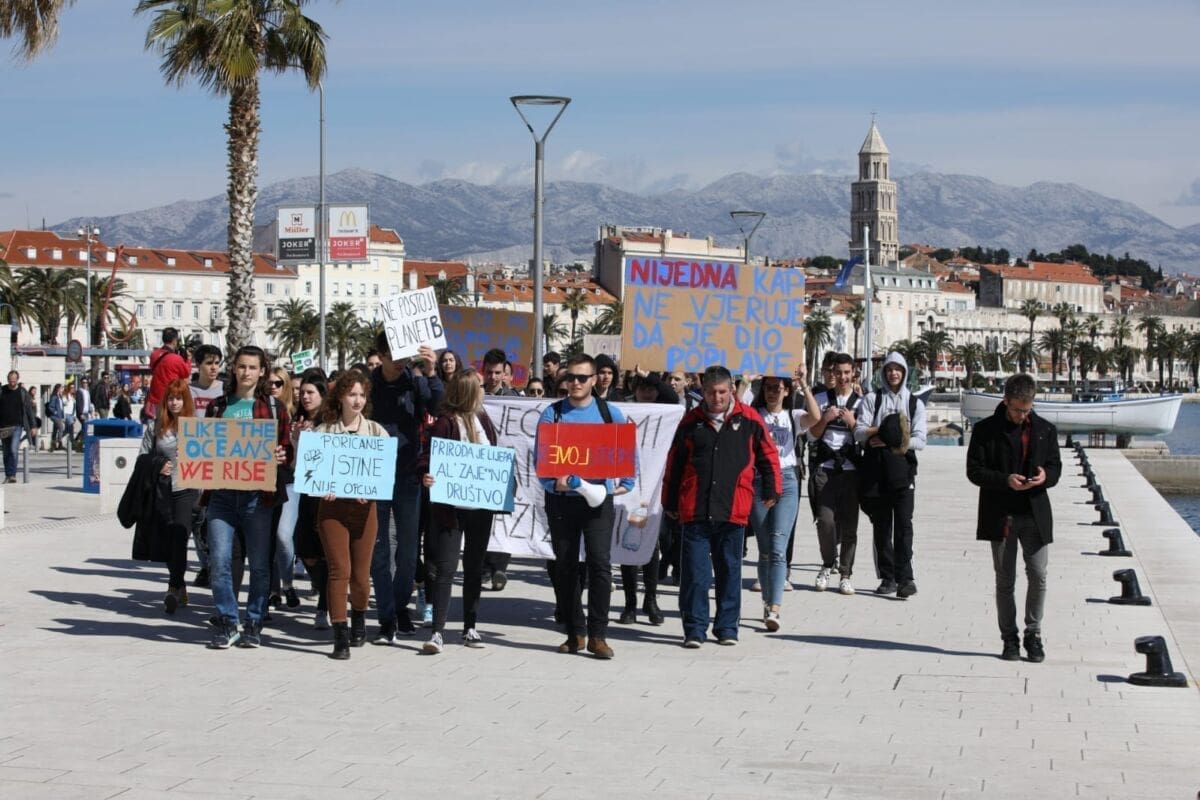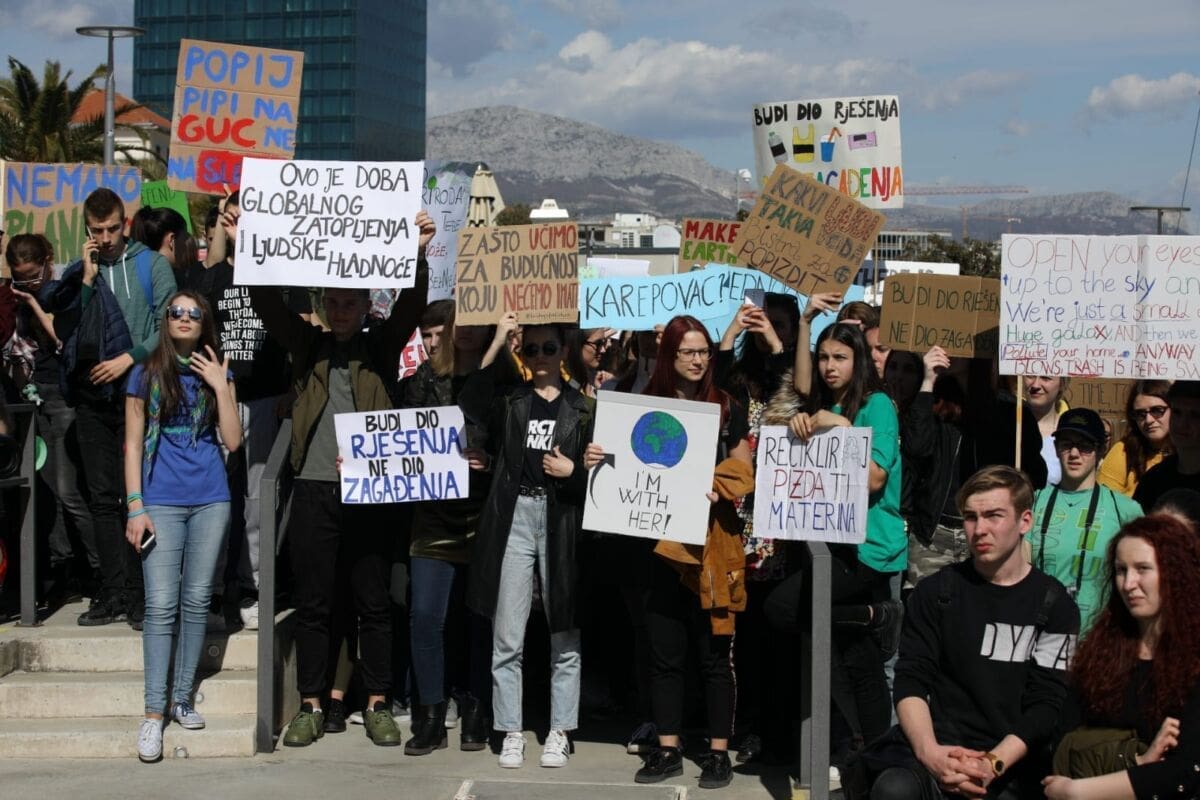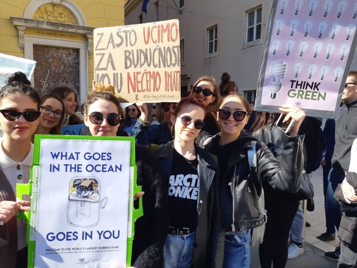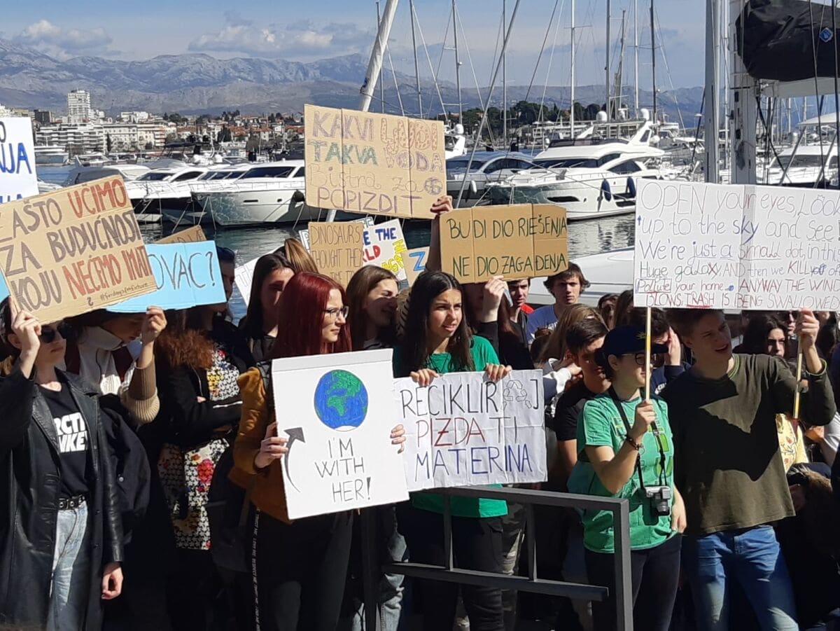 "I dinosauri su mislili da imaju vrimena", "Recikliraj, ***da ti materina", "Ovo je doba globalnog zatopljenja i ljudske hladnoće", "Budi dio rješenja, ne dio zagađenja", "Zašto učimo za budućnost koju nećemo imati?" - samo su neki od brojnih transparenata koje su nosili prosvjednici.