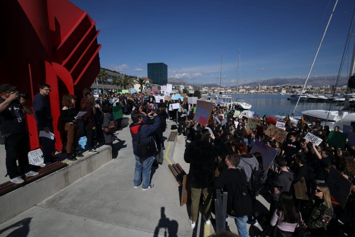 Među hrvatskim gradovima u kojima se održavaju prosvjedi je i Split. Okupljanje je počelo ispred splitskog HNK, a potom je više od 1000 sudionika prosvjednog marša krenulo prema zgradi Banovine.