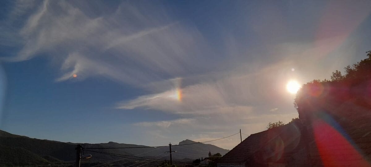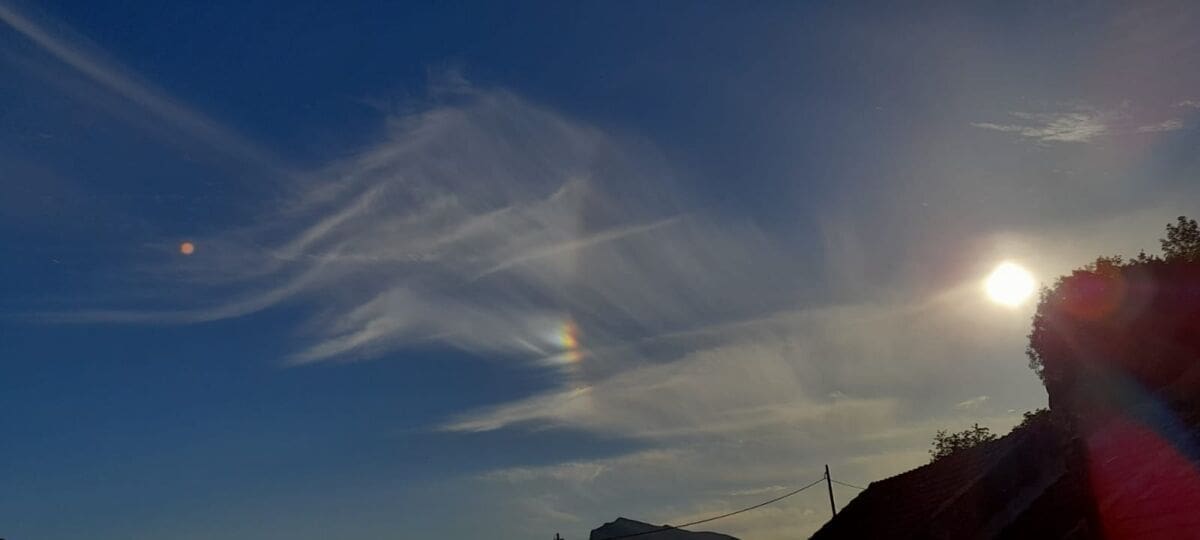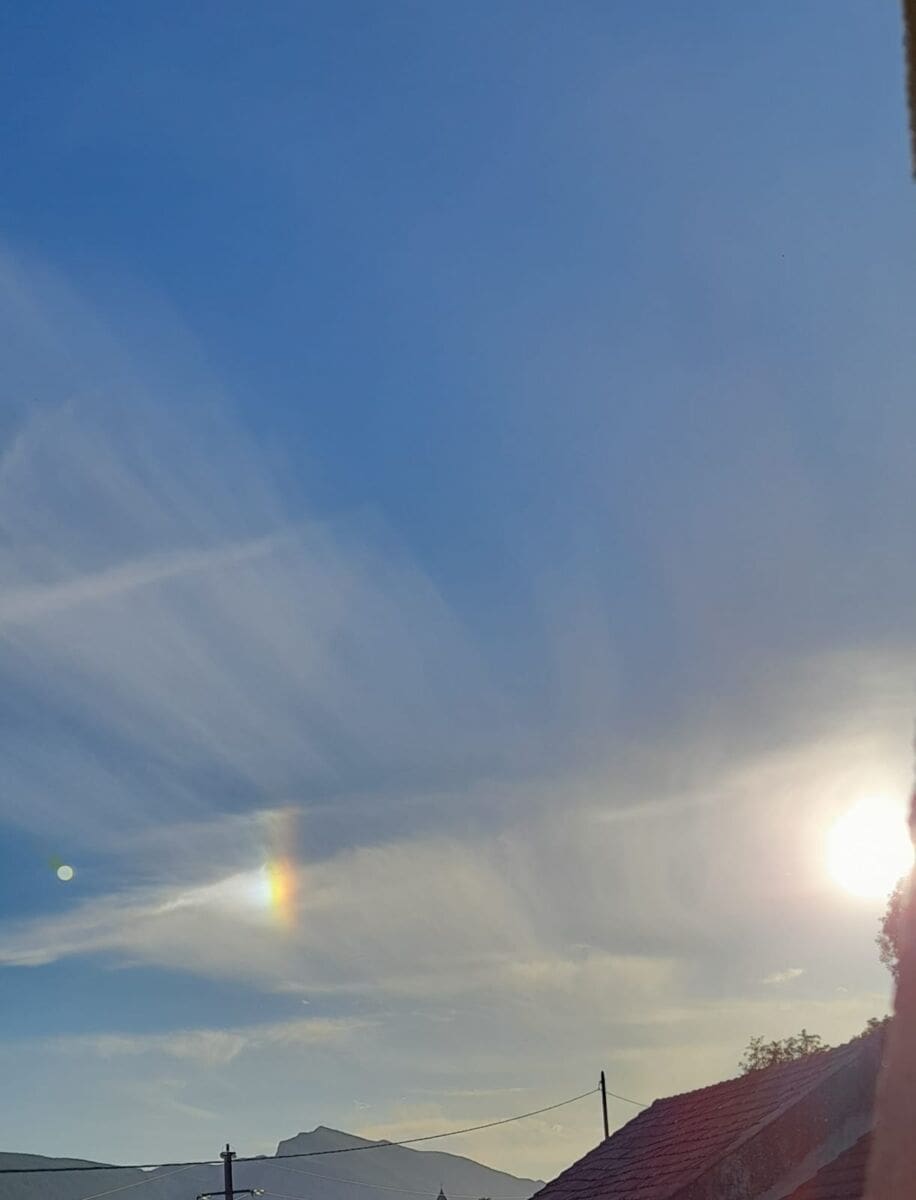 Riječ je o prirodnom fenomenu koji se pojavio na cirusima odnosno oblacima koji se nalaze na 10-ak km visine. Sastoji se isključivo od kristalića leda i radi se o lomu svjetlosti na tim kristalićima leda. Pojava se zove "lažno Sunce" ili pasunce.