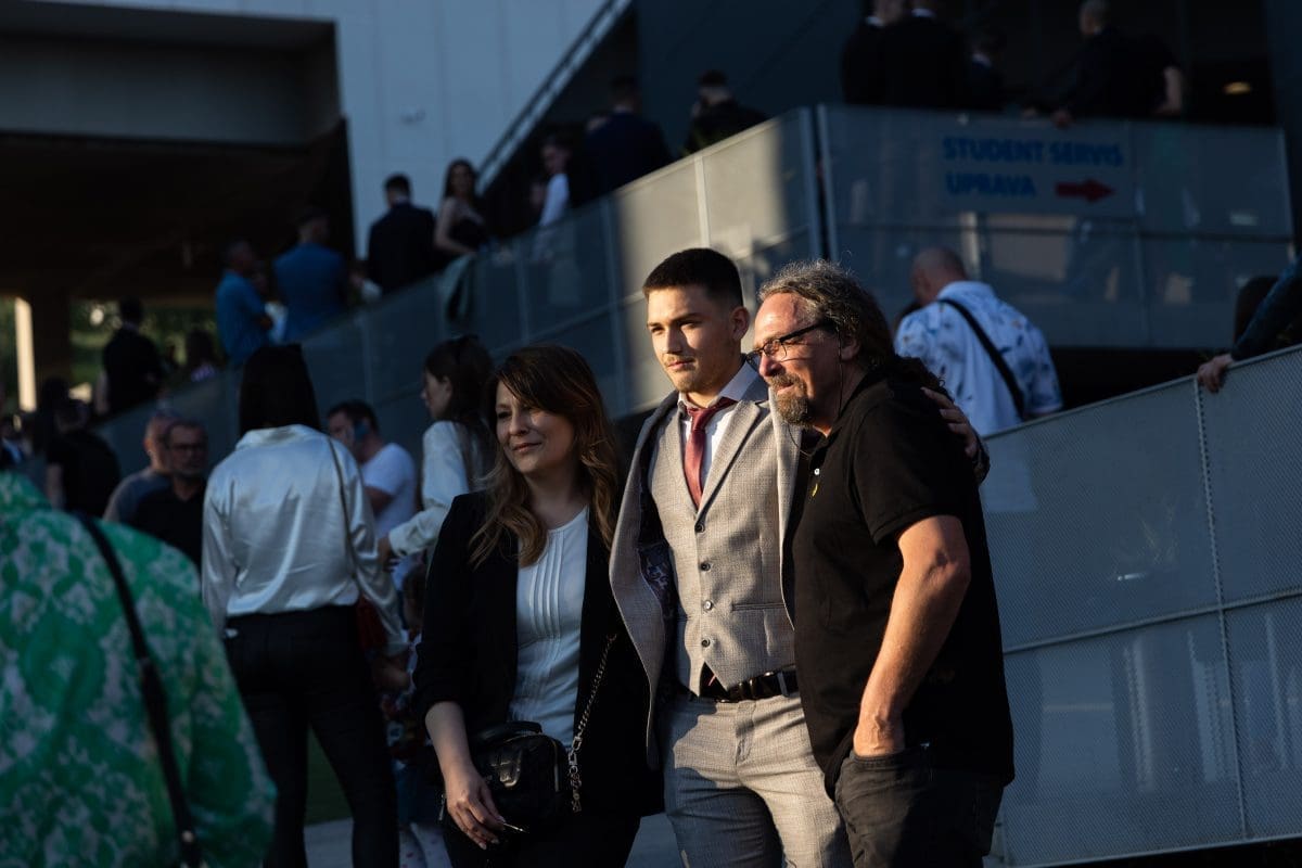 Crveni tepih, prskalice, press-wallovi pod svjetlima reflektora, koktel dobrodošlice i moderno uređenje restorana, dodatno su naglasili važnost ove večeri. Špalir je započeo u 19:30 sati, a nasmijana lica maturanata ponosno su pratili i fotografirali roditelji te ostali članovi obitelji i prijatelji koji su stigli u pratnju. Dobra se atmosfera pod zvjezdanim nebom satkanim od preko 2.000 lampica nastavila i nakon špalira.