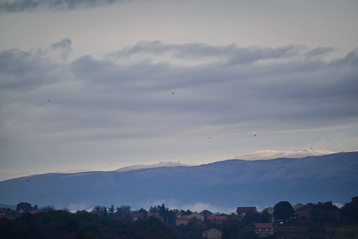 Veći dio Dalmatinske zagore, pa i Cetinskog kraj 'našao' se okružen planinama koje je zabijelio snijeg. Prekrasna je to vizura ovog jesenskog vremena u kojem se nalazimo, a savršeni ugođaj čini Biokovo, Dinara i Kamešnica, planine koje je zabijelio snježni omotač.