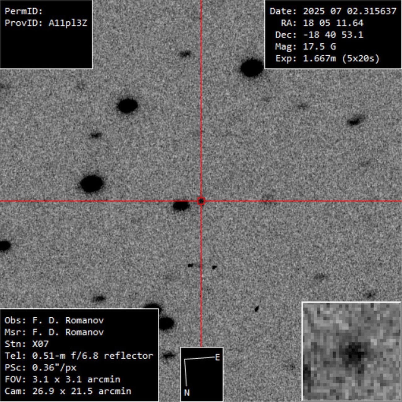 Objekt je prvi detektirao ATLAS sustav za praćenje neba 1. srpnja, a otkriće je putem društvene mreže BlueSky podijelila studentica astronomije K. Ly (@astrafoxen). Time je potaknula astronomsku zajednicu da pretraži arhivske snimke – i ubrzo su otkriveni dodatni podaci: ATLAS je zabilježio objekt već od 25. do 28. lipnja, dok je Zwicky Transient Facility izvukao snimke iz razdoblja 14. do 21. lipnja.
