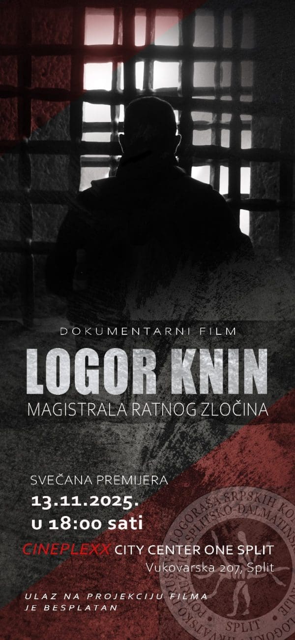 13.studenog 2025.godine s početkom u 18:00 sati, u Splitu na adresi Vukovarska 207- CINEPLEXX CITY CENTER ONE u suradnji s Muzejom Domovinskog rata u Splitu, a povodom obilježavanja „Tjedna sjećanja na žrtvu Vukovara i Škabrnje i Dana logoraša Splitsko-dalmatinske županije" održati će se svečana premijera dokumentarnog filma "MAGISTRALA RATNOG ZLOČINA- LOGOR KNIN".