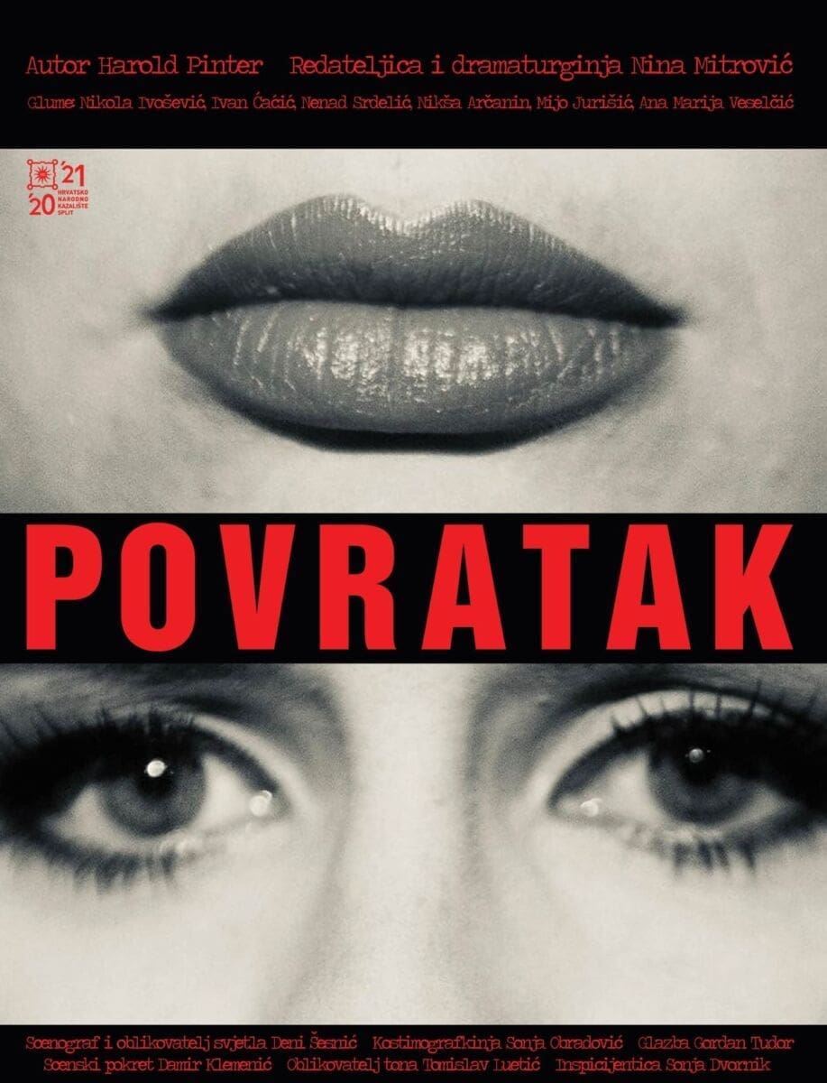 Dramska predstava Povratak premijerno će biti izvedena na sceni Hrvatskog narodnog kazališta Split 1. prosinca s početkom u 19 sati. Dramu britanskog dramatičara Harolda Pintera na scenu splitskogkazališta kao redateljica postavlja Nina Mitrović.