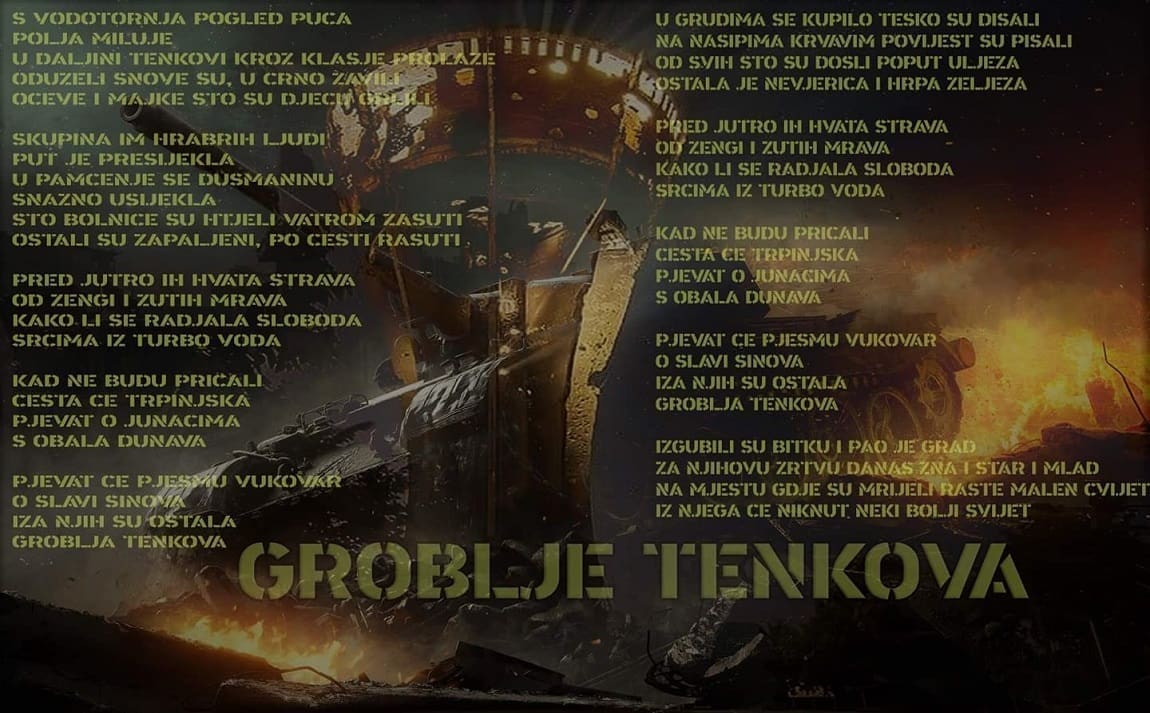 Kako biste se što bolje uživjeti u pjesmu "Groblje tenkova"donosimo i stihove pjesme kojom će Pere Eranović sigurno osvojiti publiku diljem Hrvatske i svijeta. Stoga, čitajte, slušajte i uživajte: