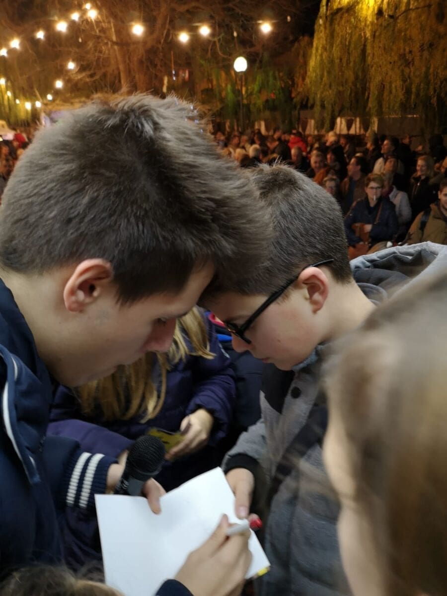 Na "Božićnoj štoriji" u Žrnovnici večeras su među brojnim izvođačima nastupili sudionici showa "Zvijezde", Roko Blažević, Lorena Bućan i Siniša Vidović, koji su premijerno otpjevali novi božićni hit "Kad imam nas".