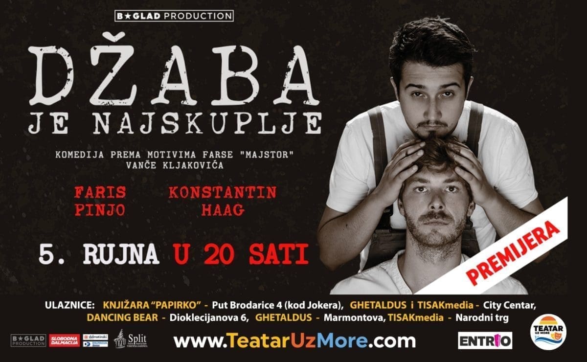 Uz napetu radnju, konstantne obrate i odličnu dozu humora komedija "Džaba je najskuplje" premijerno će se predstaviti splitskoj publici 5. rujna na Teatru uz more!