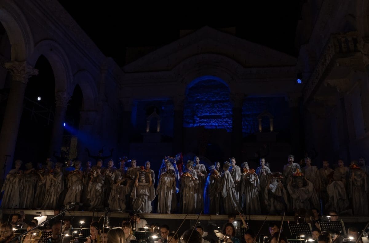 Scenska kantata "Carmina Burana" djelo je koje objedinjuje veličanstvenu i dramatičnu glazbu, moćne i intrigantne srednjovjekovne tekstove te, još od praizvedbe 1937., svojom raskoši i emotivnošću oduševljava publiku. Pod ravnanjem maestra Ivana Huta, a u režiji glasovitog poljskog redatelja Michała Znanieckog, na veličanstvenoj ambijentalnoj peristilskoj pozornici izvest će je solisti Marcelina Román, Franko Klisović, Ljubomir Puškarić, Zbor, Orkestar i Balet Hrvatskog narodnog kazališta Split i Dječji zbor Glazbene škole "Josip Hatze".