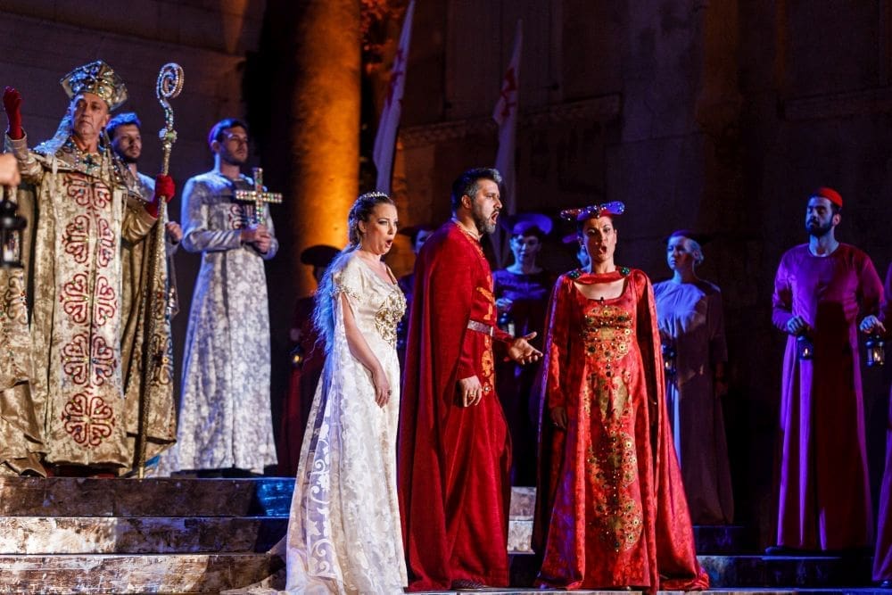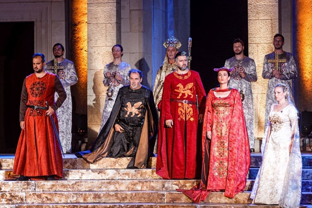 Operu Giuseppea Verdija Lombardijci izvest će solisti, Orkestar, Zbor i Balet Hrvatskog narodnog kazališta Split. Svoju prvu hrvatsku izvedbu opera Lombardijci je doživjela upravo u splitskom HNK 1994. I drugim splitskim izdanjem ove rane Verdijeve opere ravnat će maestro Ivo Lipanović, a premijera koincidira i s dvije vrijedne osobne umjetničke obljetnice. Nacionalni prvak splitske Opere, bas Ivica Čikeš obilježava 30, a redatelj Robert Bošković 20 godina umjetničkog rada. Nacionalni operni prvak Ivica Čikeš, koji je prije četvrt stoljeća u lombardijcima tumačio manju ulogu Pirra sada će se predstaviti kao Pagano u ulozi koja je, po riječima maestra Lipanovića - vrlo zahtjevna i teška uloga, između ostalog i zato što u prvom činu treba biti bariton, a u ostala tri bas. Vrlo je malo pjevača na svijetu koji to mogu.