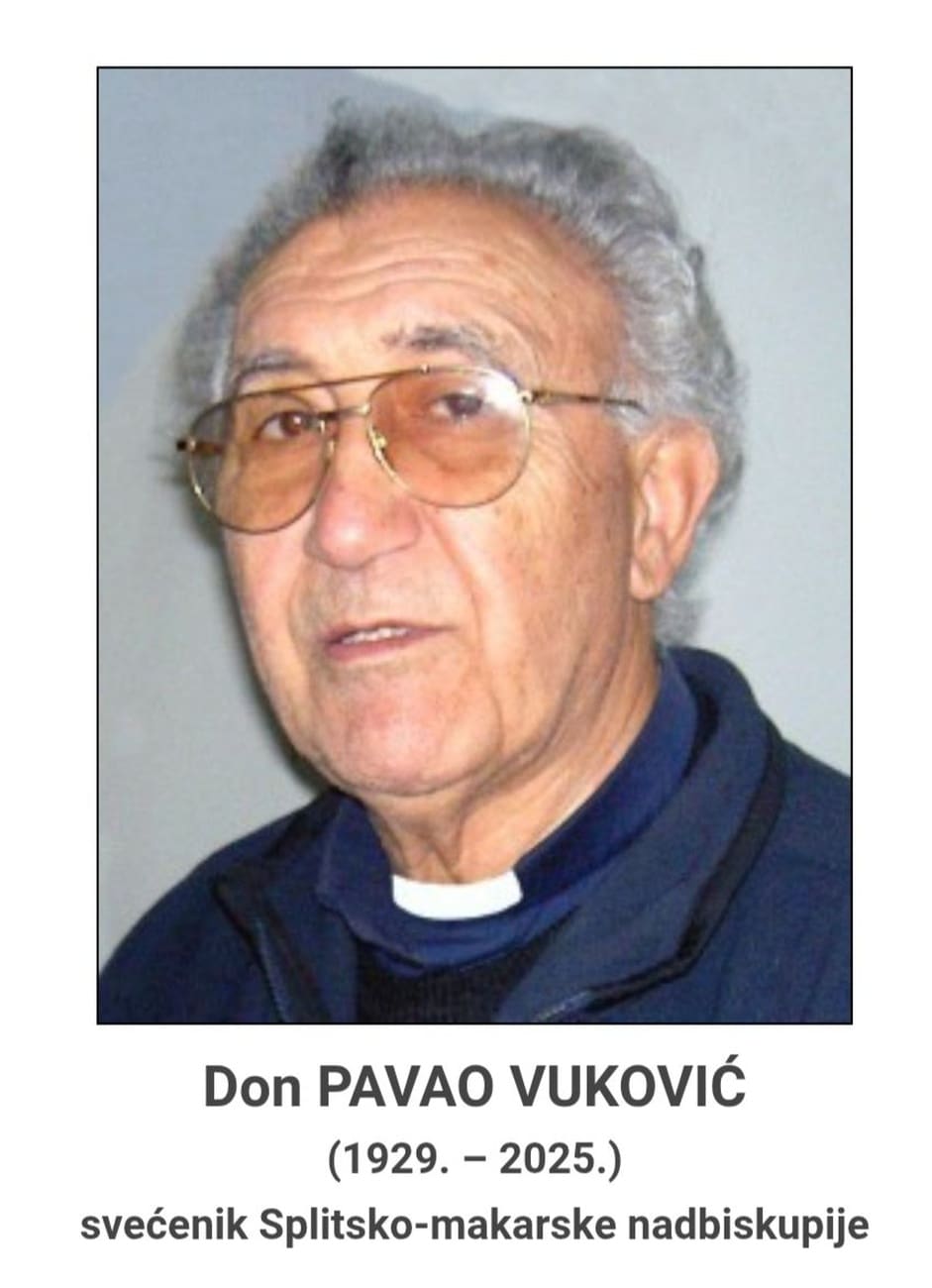 Dana 9. srpnja 2025. godine, u 96. godini života, okrijepljen svetim sakramentima, u volji Božjoj preminuo je don Pavao Vuković, svećenik Splitsko-makarske nadbiskupije.