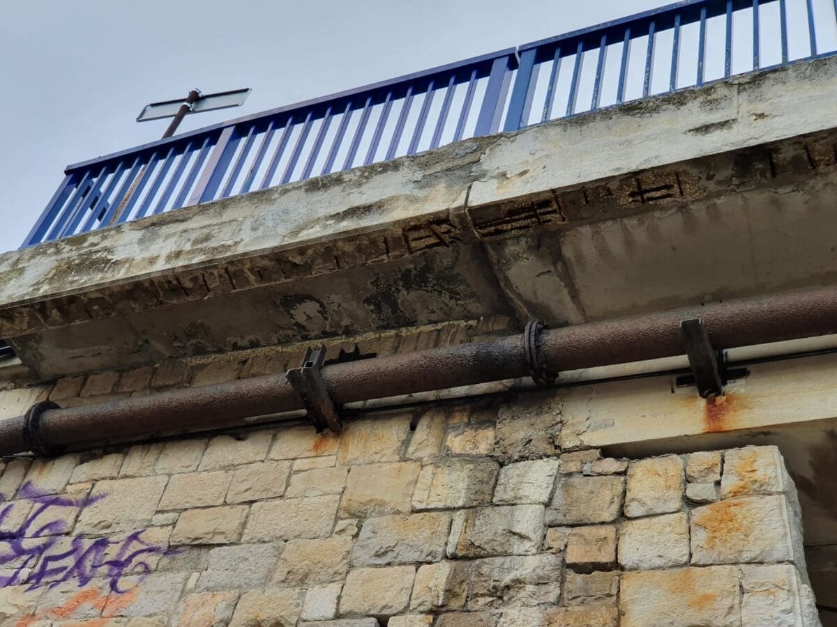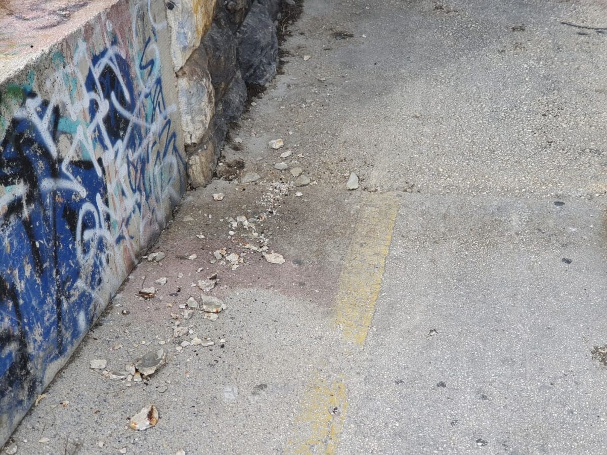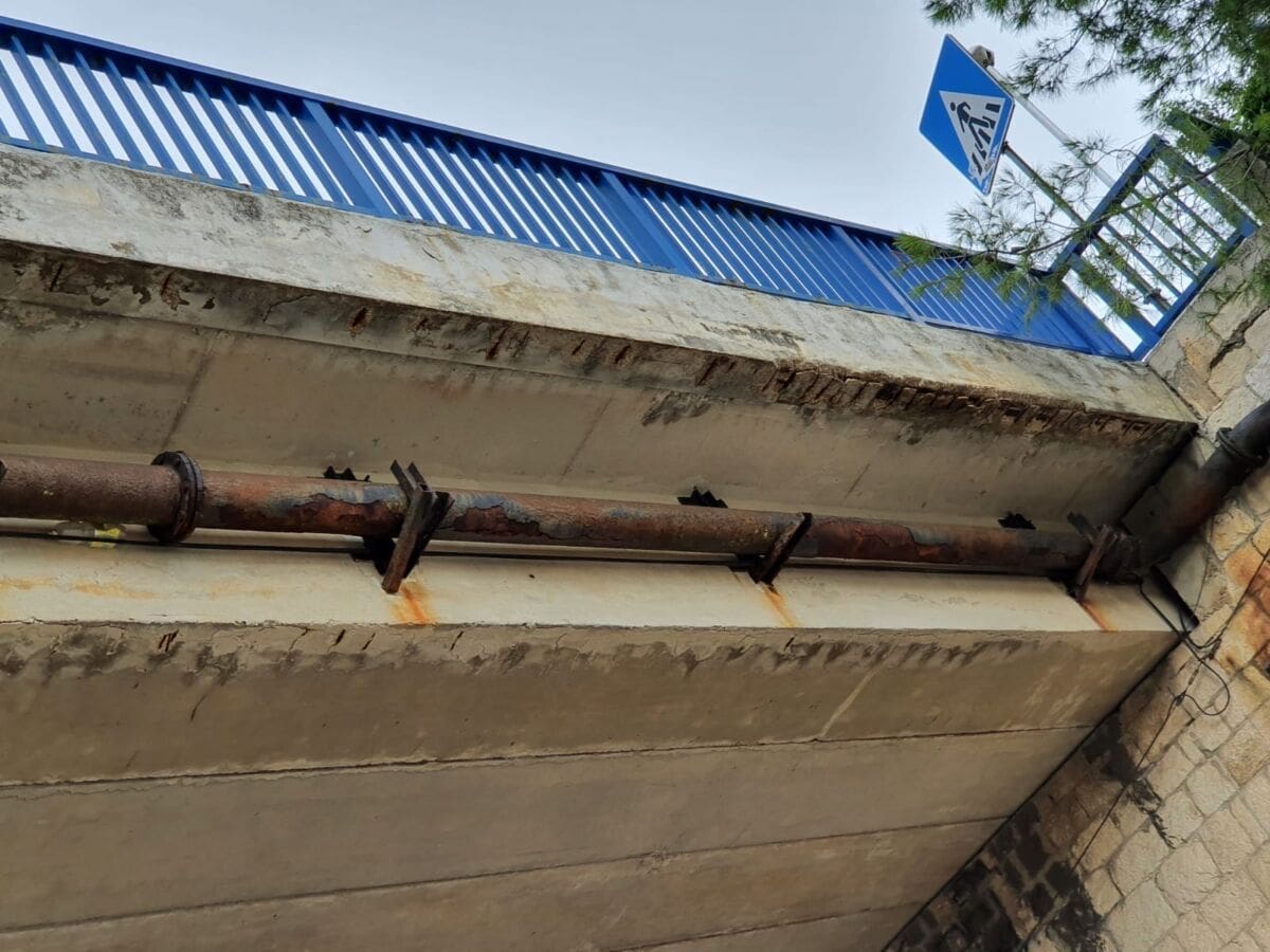 Čini se da prometnost ovog mostića uzima danak, pa su tako komadi betona počeli padati na tlo. Srećom, zasad se radi tek o malim krhotinama, no s vremenom bi se situacija mogla pogoršati ako se nešto ne poduzme. Također, metalnu cijev koja prolazi ispod mosta nagrizla je hrđa, što nekom slučajnom prolazniku ne ulijeva veliko povjerenje.
