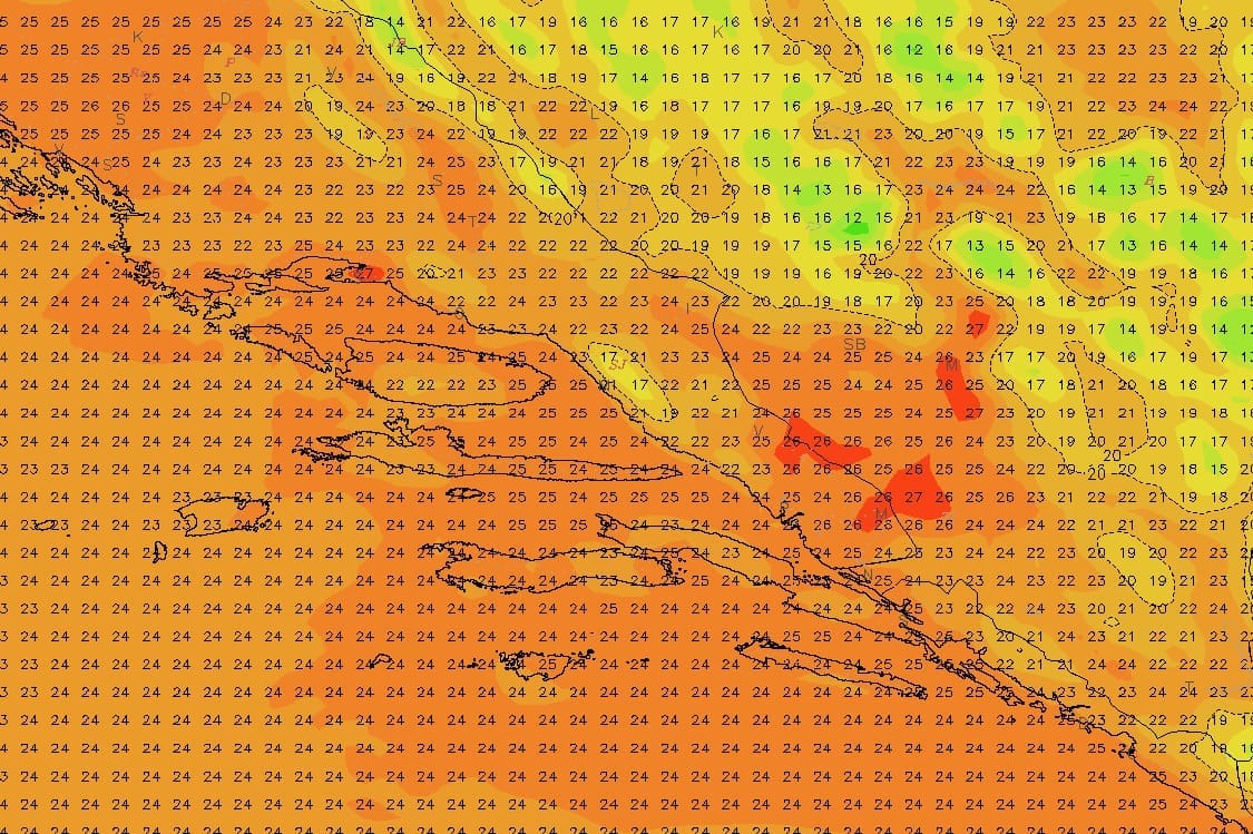 Nakon promjenjive noći danas nas očekuje djelomično sunčano i većini krajeva suho vrijeme. Ipak, popodne će biti lokalno jačeg razvoja oblaka, mjestimice uz slabe grmljavinske pljuskove ili kišu. Puhat će slaba do umjerena bura i levant, popodne na moru sjeverozapadnjak, navečer slaba do umjerena bura. Minimalne jutarnje temperature zraka od 11°C ponegdje u Dalmatinskoj zagori do 18°C ponegdje uz obalu i na otocima. Najviše dnevne temperature od 22 do 26°C.