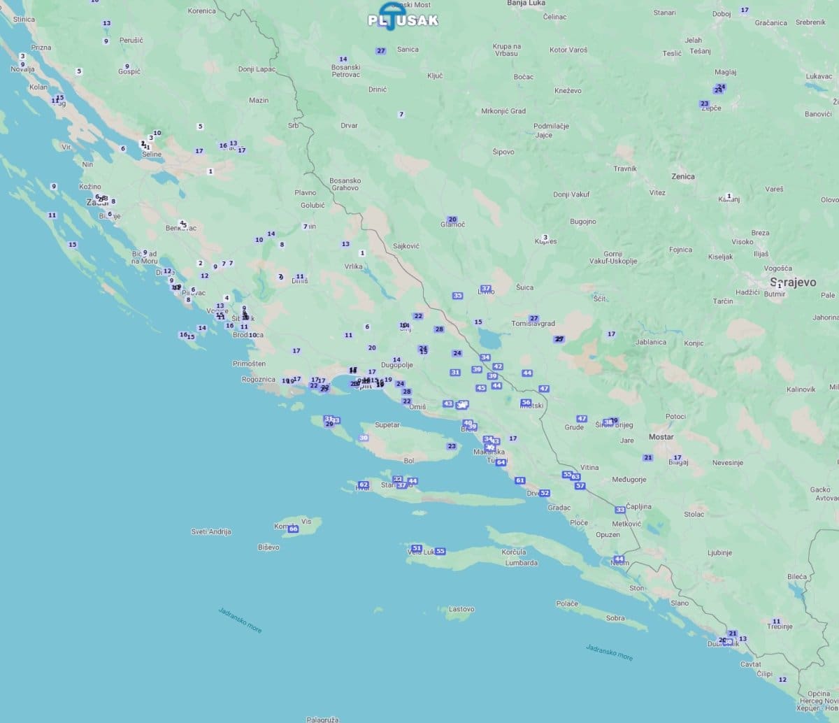 Posljednja 24 sata Dalmacije je bila najkišovitiji dio zemlje. Primjerice, na Mljetu je palo preko 120 litara oborina. Prema podacima mreže Pljusak.com, Komiža, Hvar, Podgora, Živogošće i kolica Vrgorca primili su preko 60 mm oborine, Vela Luka, Blato, Vrgorac i Zaostrog preko 50... Najmanje je palo na području od Zadra do Knina, 4 do 8 litara.