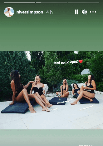 Kako se može vidjeti u posljednjoj objavi, Nives i prijateljice nazdravljaju uz bazen dok na sebi imaju crne kupaće kostime, a uz fotografiju je napisala "Moje". Preplanula Nives nije otkrila gdje je nastala fotografija.