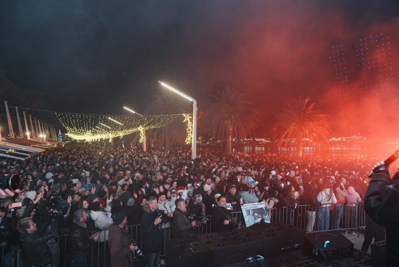 Odbrojavanje do ponoći na Rivi se dočekalo u jednom glasu, a odmah nakon ulaska u 2026. uslijedio je veliki vatromet. Nebo iznad Splita zasjalo je u bojama, dok je među okupljenima planula i bakljada.