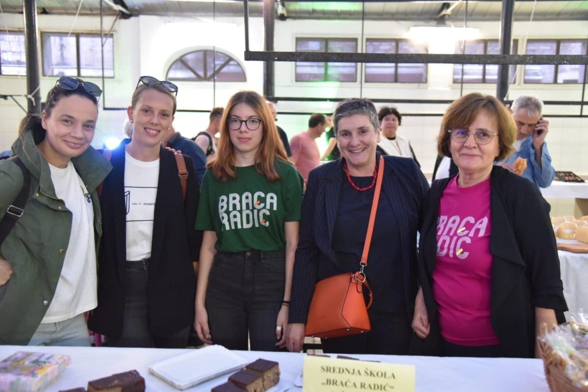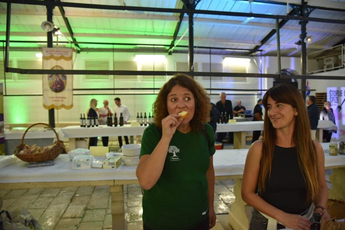 Tu su izlagači s proizvodima od tisućljetne masline, proizvođače pršuta i sira i divne slastice. Ono što smo željeli to smo i postigli jer smo jutros imali na Prokurativama veliku feštu. Jutros smo bili s učenicima Ugostiteljske škole koji su kuhali s tri vrsna šefa kuhinje.