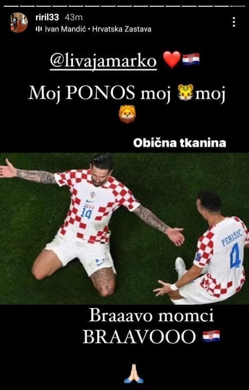 Iris Livaja, supruga popularnog nogometaša, zvijezde Hajduka i 'Vatrenih' čestitala je Marku na pobjedi i postignutom golu.