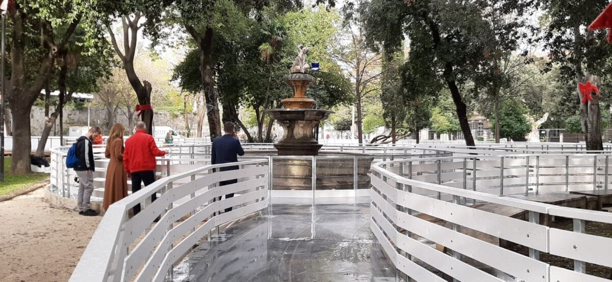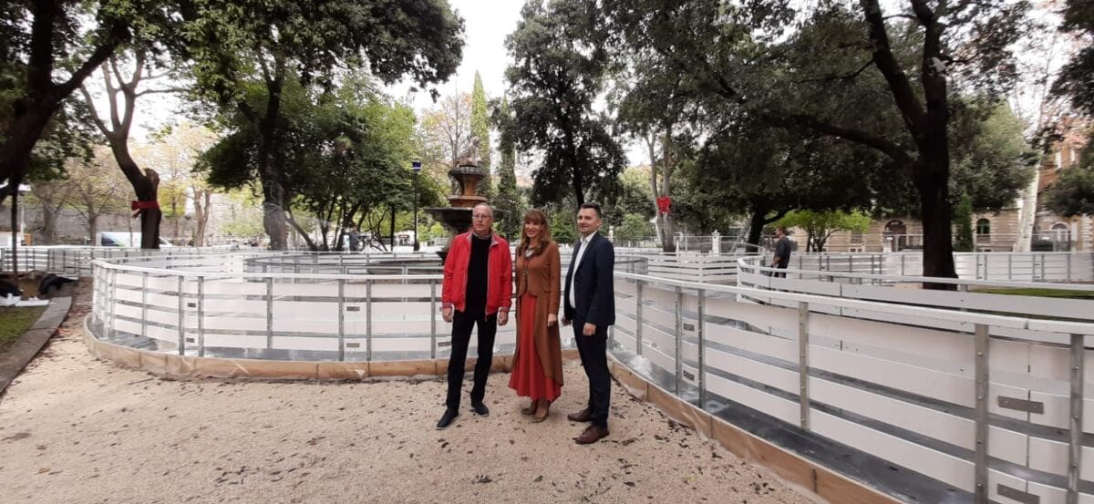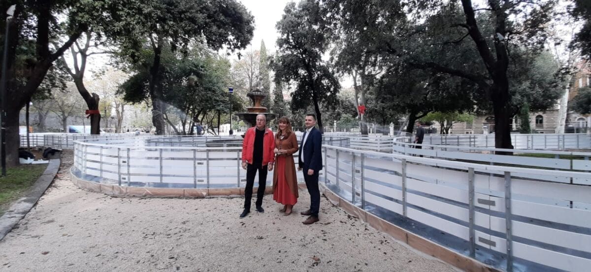 Direktorica Turističke zajednice grada Splita Alijana Vukšić, direktor Spalatum DMC-a Ante Šunjić i voditelj Ledenog parka Đardin Ante Jukić u Strossmayerovom perivoju predstavili su adventsku manifestaciju "Ledeni park u Đardinu"