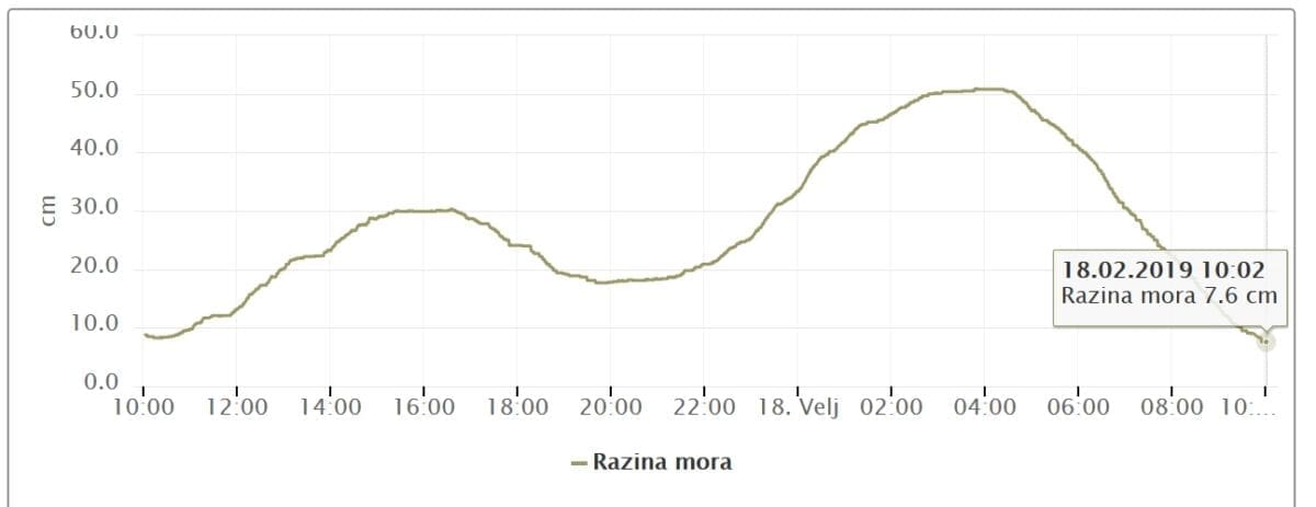 Već se nekoliko dana nalazimo u razdoblju najizraženije oseke dosadašnjeg tijeka godine. Za usporedbu, more se spustilo za više od metar u usporedbi sa stanjem koje je izmjereno 3. veljače.