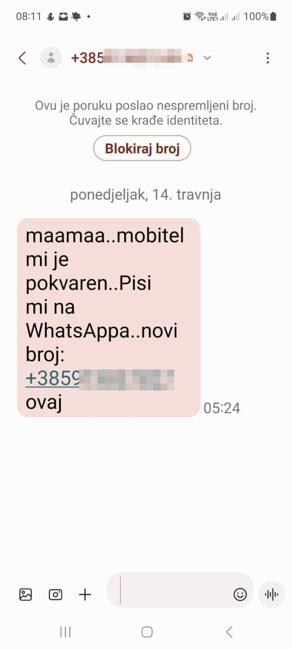 Ovaj put, meta su ponovno roditelji, najčešće majke, kojima s nepoznatog broja stiže poruka u stilu: