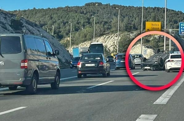 Sudarila su se dva automobila od kojih je jedan završio na krovu, ali nema ozlijeđenih, javlja ŠibenikIN.