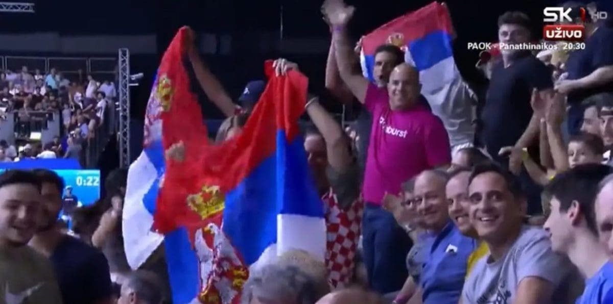 Naime, tamo su dvije navijačice u hrvatskim dresovima držale srpsku zastavu. Očito su Novak i Marin prijateljskom atmosferom 'zarazili' i navijače.