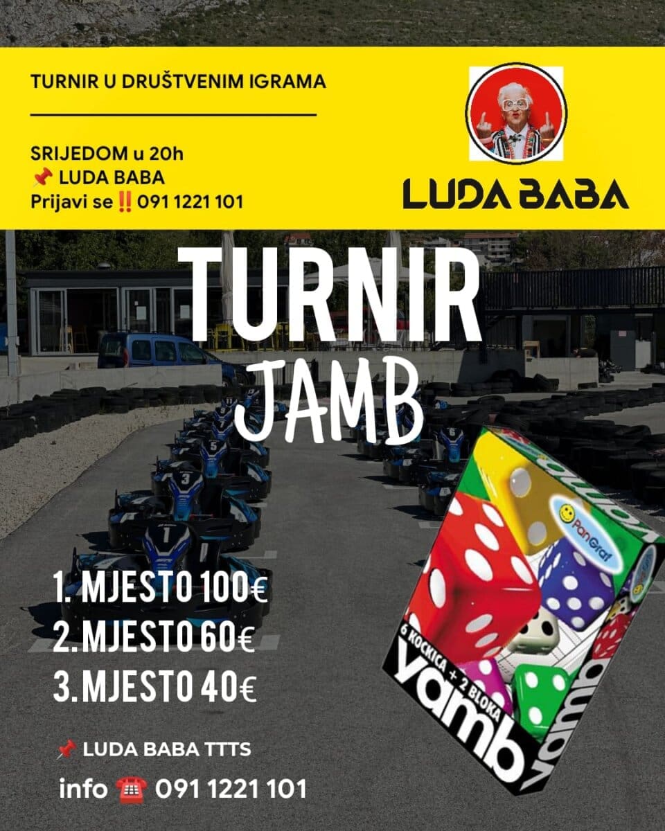 Ljubitelji društvenih igara, pripremite se! U srijedu, 23. listopada s početkom u 20 sati, Split postaje domaćin uzbudljivog Jamb turnira u organizaciji Lude Babe. Popularna igra iz djetinjstva vraća se na velika vrata, pružajući priliku da kroz strategiju, malo sreće i puno natjecateljskog duha osvojiš sjajne nagrade!