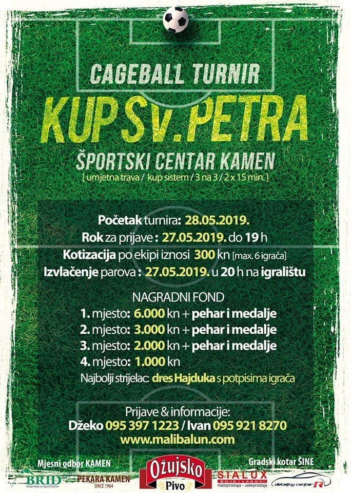 U Športskom centru Kamen se organizira cageball turnir Kup sv. Petra, koji počinje 28. svibnja 2019. godine.