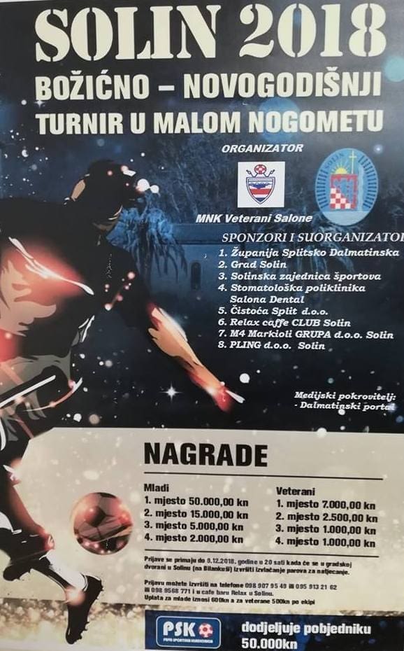 Sve je spremno za XXI Božićno - Novogodišnji malonogometni turnir Solin 2018, koji i ove godine organizira sportska udruga Veterani Salone uz pomoć i pokroviteljstvo Grada Solina.