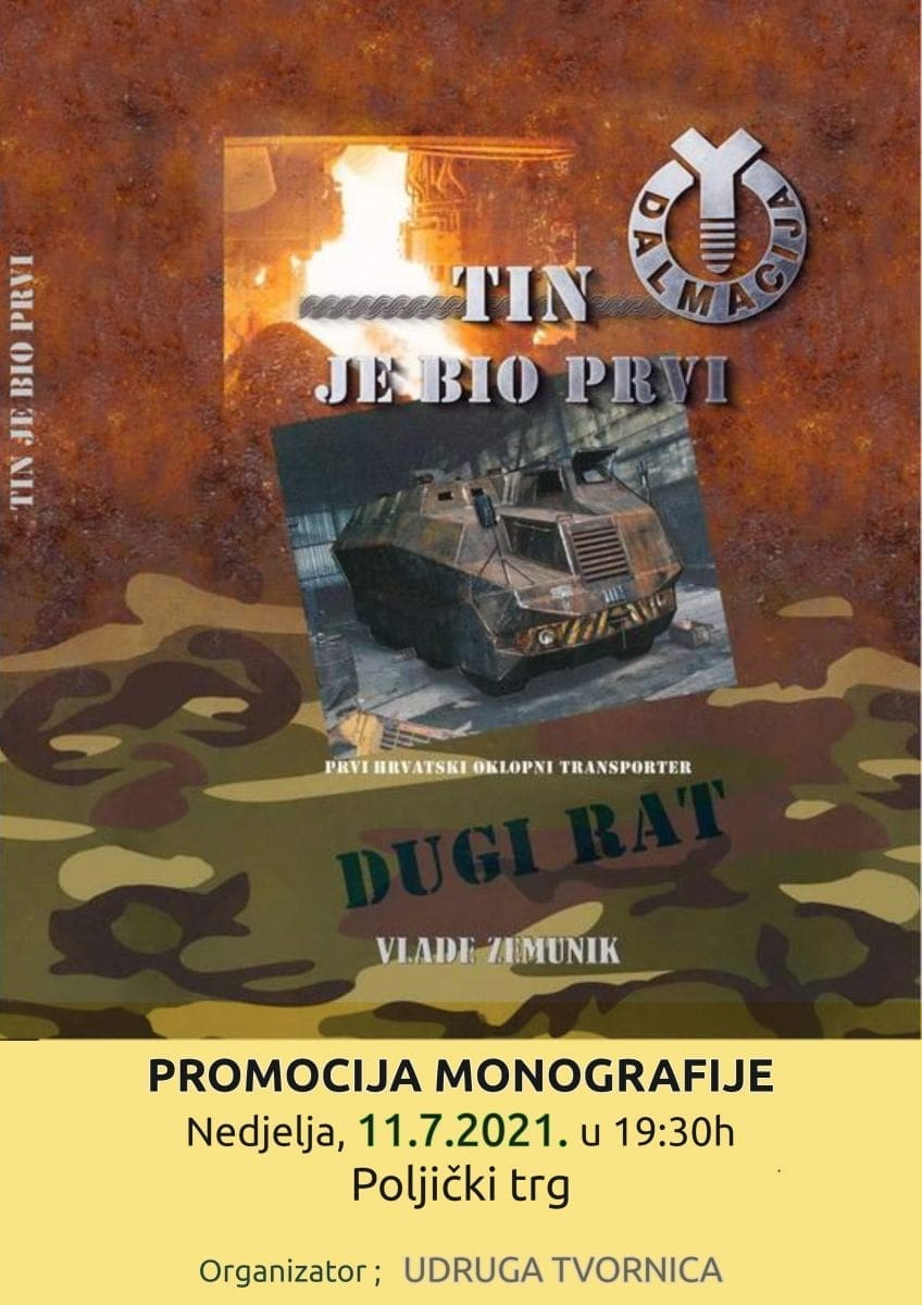 U Dugom Ratu, na Poljičkom trgu u nedjelju (11. srpnja 2021.) s početkom u 19:30 na dan 30. godišnjice izlaska prvog ratnog transportera iz tvornice "Dalmacija" u Dugom Ratu, svečano će se promovirati monografija "TIN je bio prvi", autora Vlade Zemunika u nakladi udruge Tvornica.