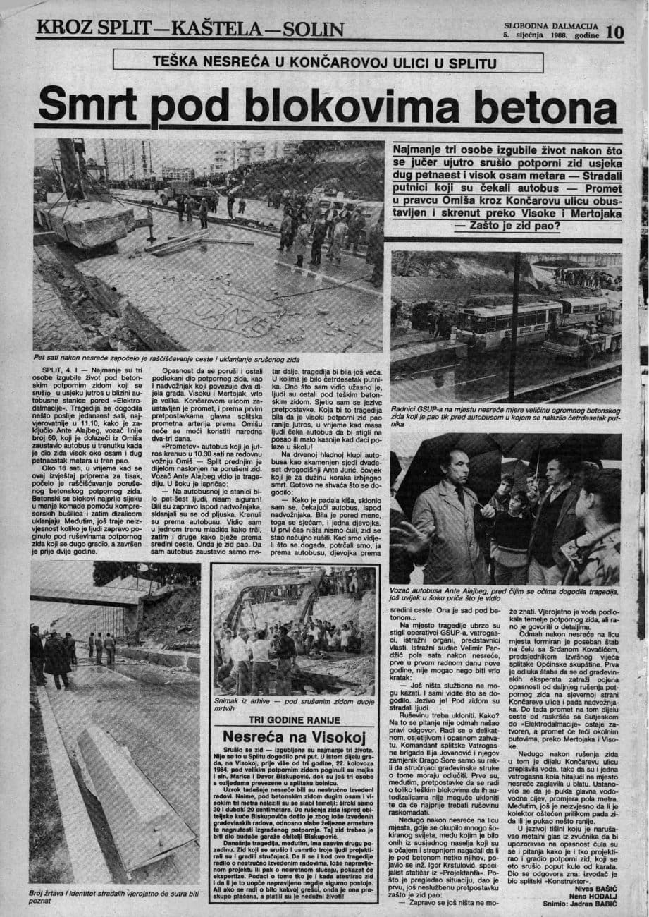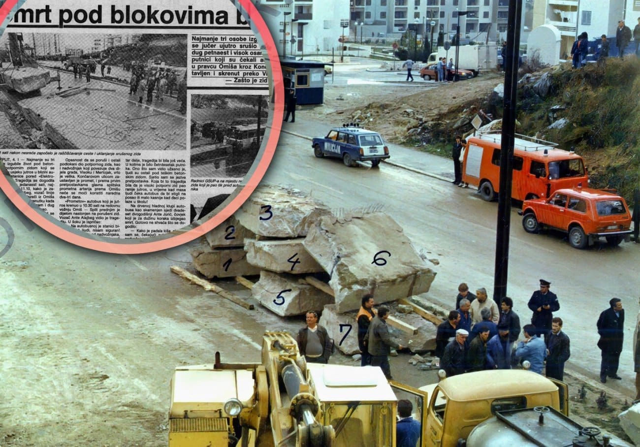 Tog sivog, jednako kišovitog 4. siječnja 1988. godine na nogostup i cestu je pao golemi betonski zid, onako u komadu – sedam metara visok, 24,5 dug, komad potpornog zida težak preko 350 tona jednostavno se prevalio na kolnik! Tri života su izgubljena u trenu, a svjedoci su govorili kako bi žrtava bilo i puno više da koju sekundu ranije nije prošao Prometov autobus i sa stanice u smjeru grada poveo, doslovno spasio, desetka naših sugrađana.