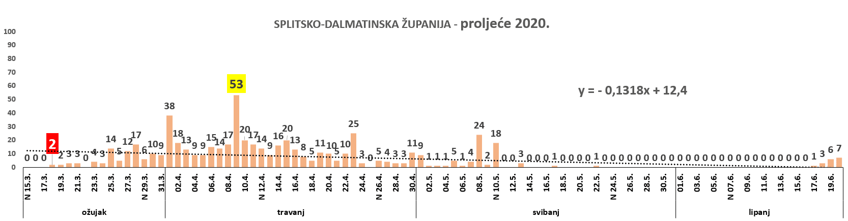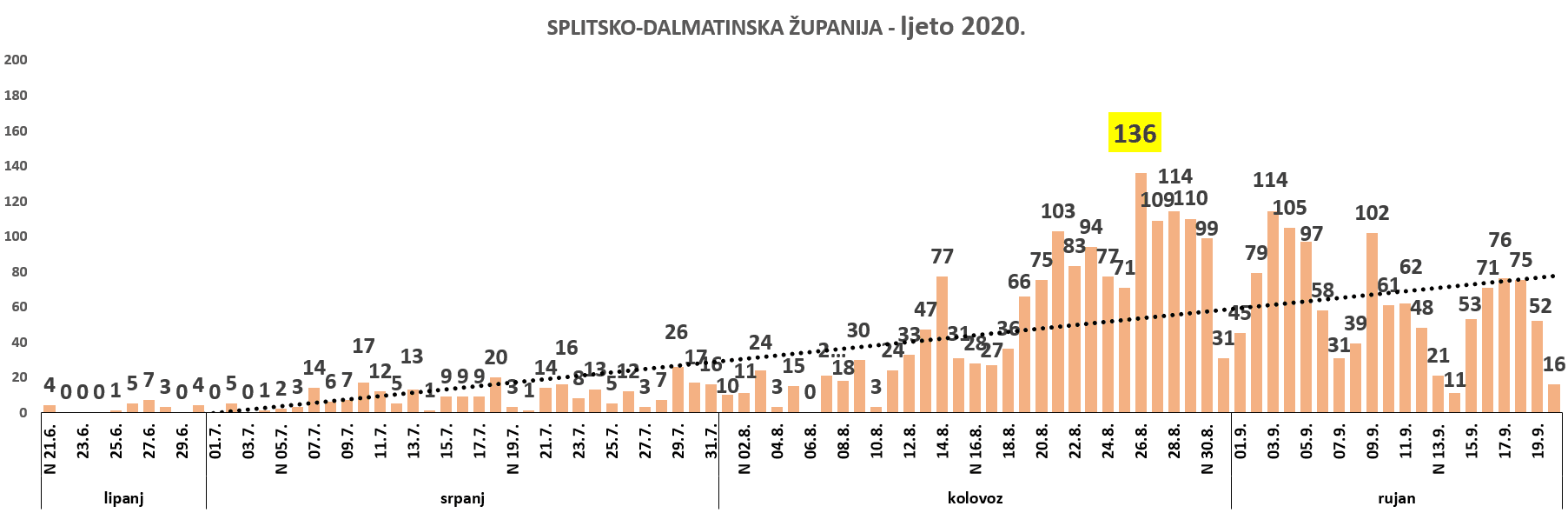Ovaj uzlazni trend zaražavanja u ljetnom godišnjem dobu u Splitsko-dalmatinskoj županiji isključivo je posljedica zaražavanja u zatvorenim prostorima. Na Splitskom pazaru nijedna piljarica cijelu godinu nije zbog korone dobivene na radnom mjestu izostala nijednog dana. Isto tako malo tko se na plaži zarazio.