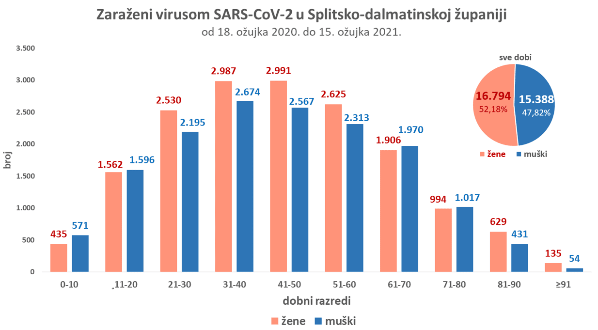 Tablica 1. Zaraženi u pandemiji SARS-CoV-2 virusom u Splitsko-dalmatinskoj županiji - OBA SPOLA