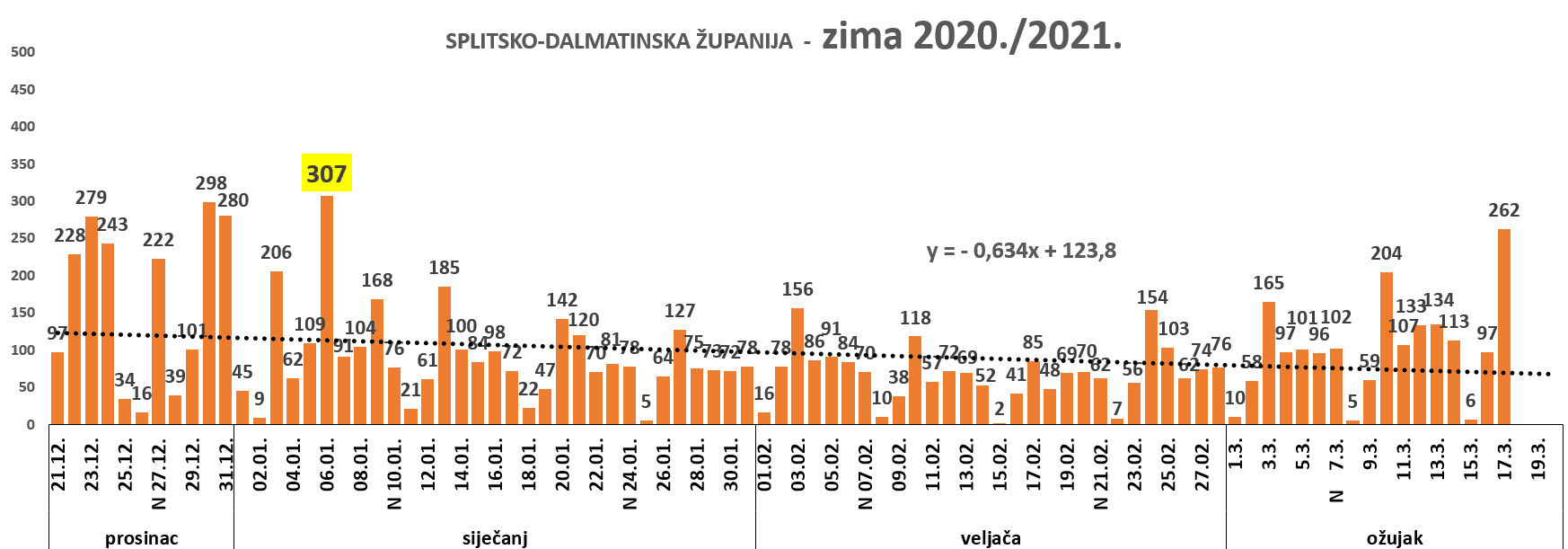 Zima, najhladnije godišnje doba, nije pokazala „svoje zube“ kako se od nje očekivalo i pored povećanja zaraženih posljednjih tjedana kalendarske zime. Dapače, nije niti nastavljen trend povećanja broja zaraženih iz jeseni već je uslijedio pad trenda zaražavanja korona virusom.