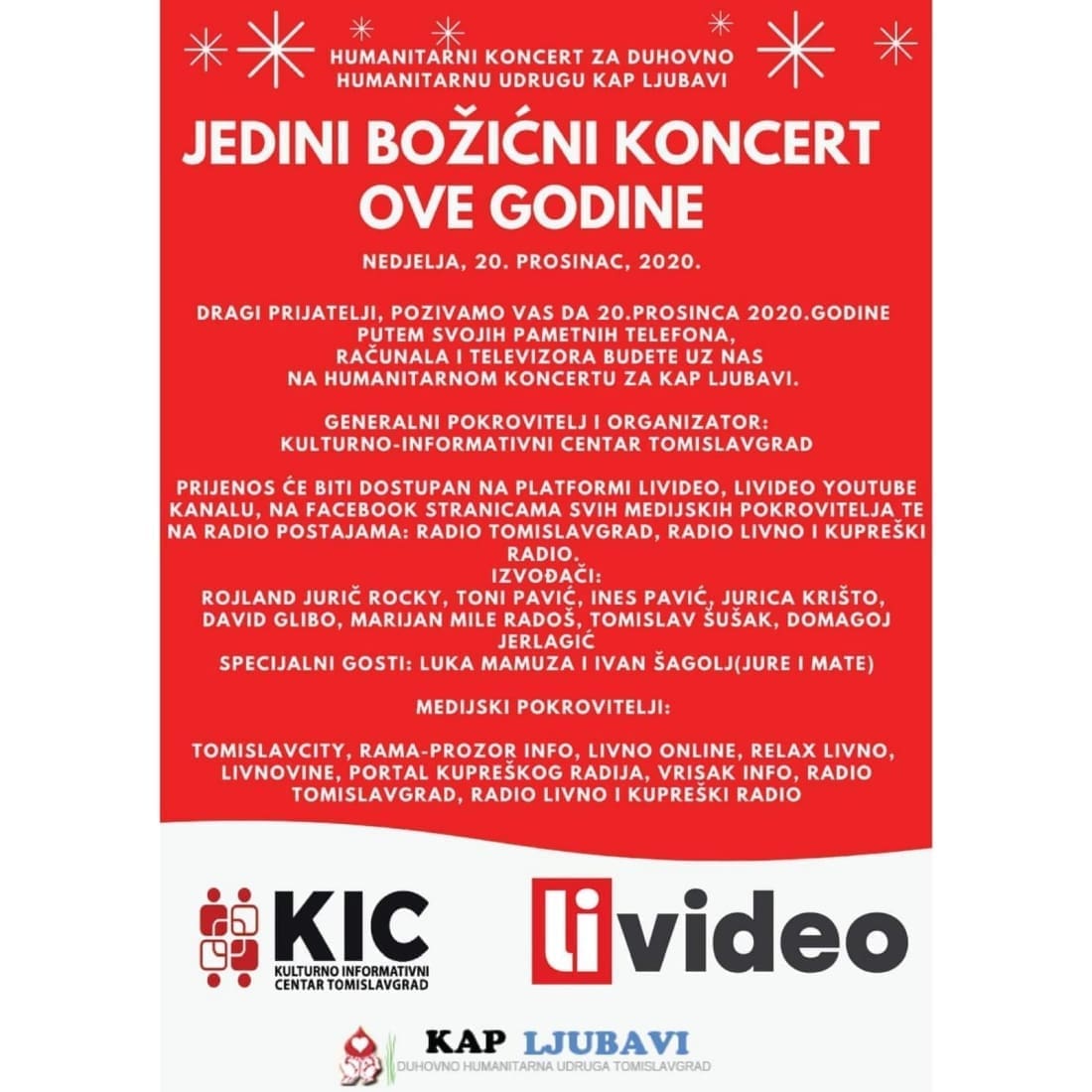 Talentirani mladi glazbenici iz Livna, Tomislavgrada, Rame i Širokog brijega najavljuju jedini božićni online koncert ove godine koji će se održati u nedjelju 20. prosinca u 20 sati, a prenosit će se putem live streama te radio postaja.