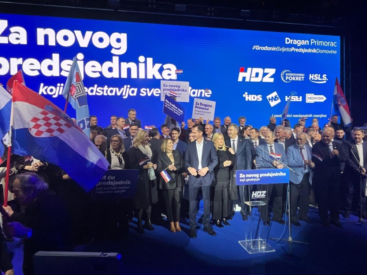 U Splitu je danas održan završni skup predsjedničkog kandidata HDZ-a, Dragana Primorca, čime je zaokružena njegova kampanja uoči nadolazećih izbora. Skup se održao u maloj dvorani na Gripama, s početkom u 11 sati, a okupio je brojne članove i simpatizere stranke.